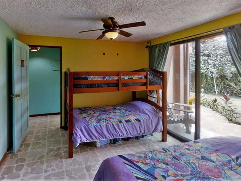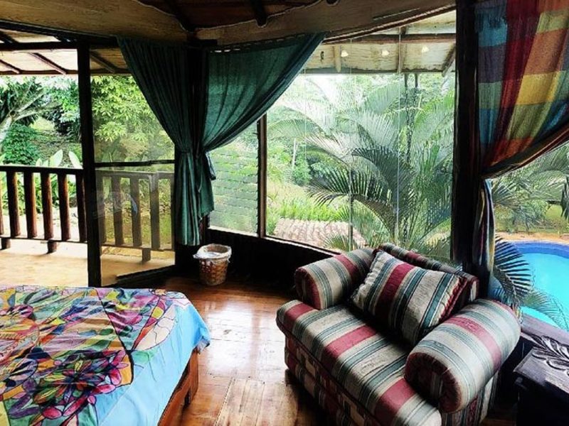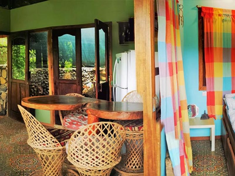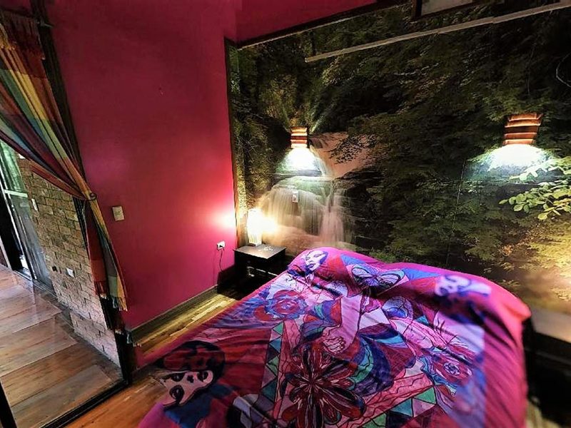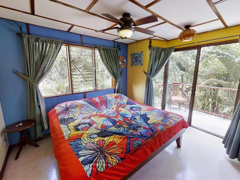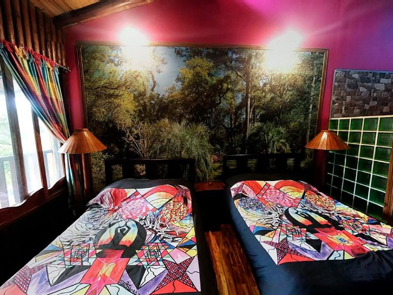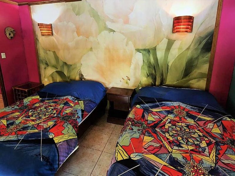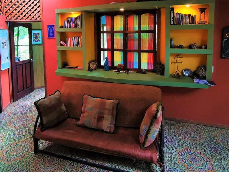 In this main building, there are nine rooms, each with its bathroom, in which 13 beds are distributed. Each room has a colorful frequency painting associated with it, giving an incredibly personalized touch in each space. The rooms on the first floor have a corridor space to have a coffee or to enjoy the sun. All rooms on the second level have a charming balcony to enjoy the views of the property. On the second floor, there is also a 530 sq.ft terrace, which is currently being used for massage sessions, taking full advantage of the magical atmosphere that is generated here.