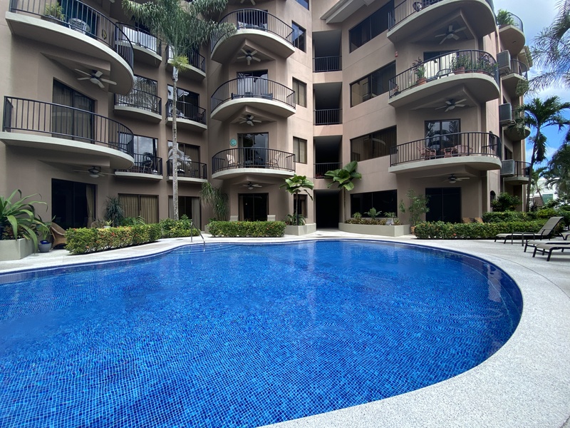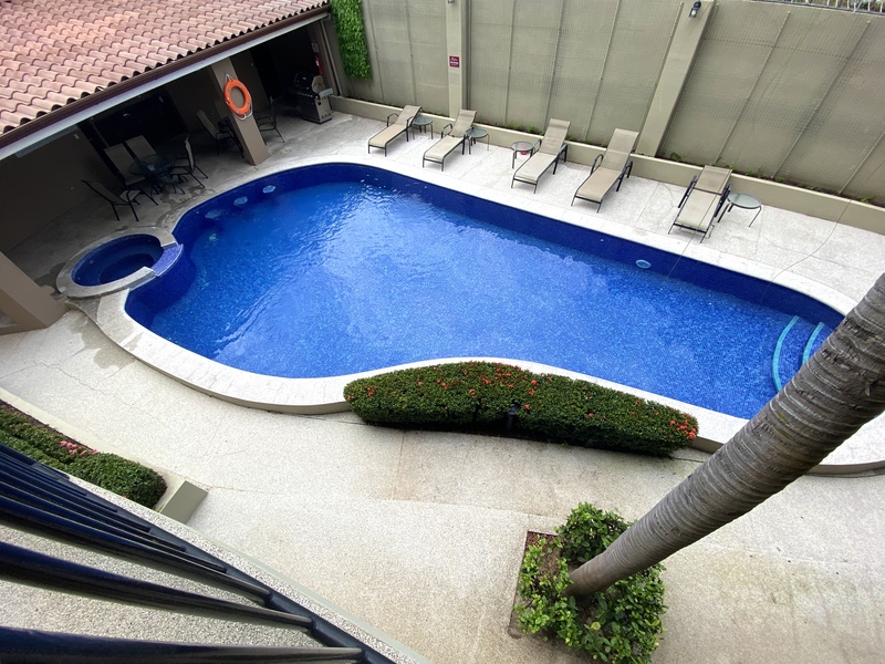 Enjoy two large swimming pools and a rancho complete with barbeque grill. Experience the paradise of Costa Rica surrounded by the tropical plant life native to the area. You will see palm trees, colorful foliage and glimpses of exotic wildlife. Our community consists of two towers with four stories in each tower. Each floor contains 12 units with elevator and stair access. The property is gated and secured 24/7 by security cameras, motion sensors and a security guard