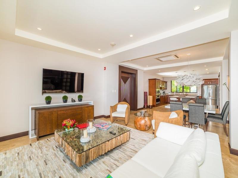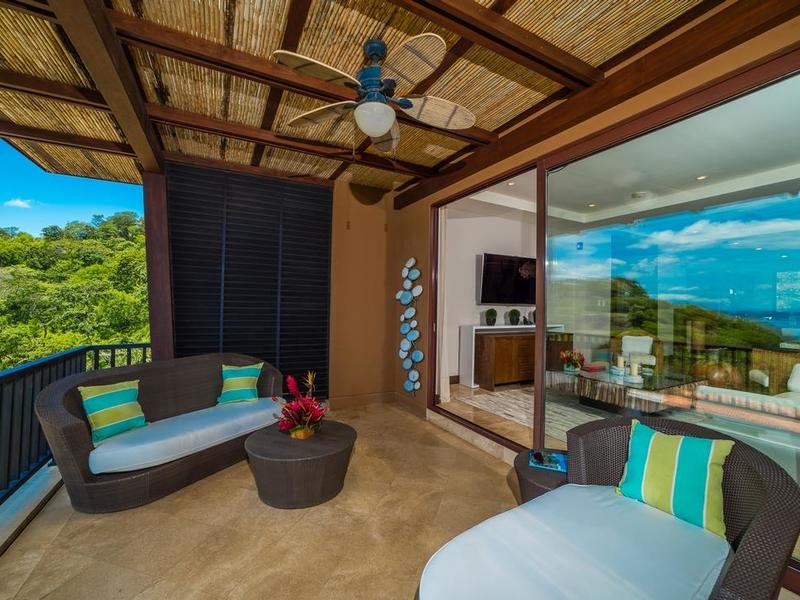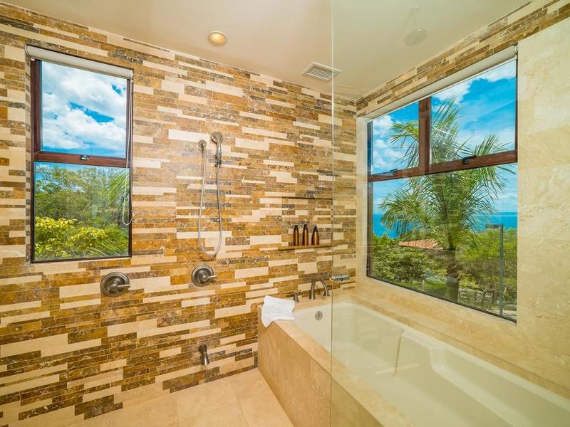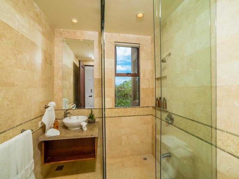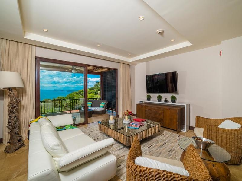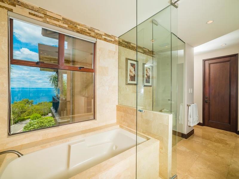 This stunning two-bedroom, two-bathroom condo is the ideal location for you to experience luxury accommodations as well as spectacular views of the Pacific Ocean. Azul Paraso 9A is situated on a super clean peak in upscale Playa Ocotal, letting you to get away from it all while remaining only a five-minute ride from Ocotal beach and restaurants. The chef's kitchen in this apartment is top-of-the-line, with stainless steel GE Profile appliances. The kitchen has an eat-in breakfast island and opens beautifully into the living area, which opens up to a large terrace with dramatic views of the ocean through large sliding glass doors. The living area of this home features large beautiful pocket doors that can open into the master bedroom. The master bedroom has an incredible en-suite bathroom with a rain shower and a separate bathtub for long, relaxing soaks. The master bedroom also has access to the terrace, which provides additional views of the ocean. The second bedroom is large enough to accommodate two full-sized beds. The privacy of this condo, surrounded by nature and with incredible ocean views, distinguishes it as a must-stay for a relaxing vacation. The Azul Paraíso development has a beautiful and unique pool for each separate building within the complex. As a result, your pool is shared with only five other units in your building, ensuring maximum privacy. Only a five-minute drive away, Ocotal Beach is home to the popular Father Rooster's restaurant and Azul Paraso's private beach lounge. Your guests are welcome to dine at Father Rooster's and visit Azul Paraso's beach club, which features volleyball courts, a large playground, a grill and outdoor lounge area, a business center, and kayaks and other fun beach toys. A membership to The Club at Coco Bay Estates is also available, which includes a large tropical pool, restaurant, tennis courts, an exercise room, and access to Playa Ocotal Beach Club amenities. The condo is only a 10-minute drive from Playas del Coco, which has a variety of restaurants, bars, shops, banks, supermarkets, pharmacies, and other amenities. Taxis are available to Playas del Coco, which is only 30 minutes away from Liberia International Airport (LIR). TV