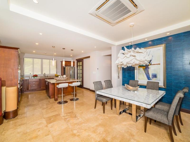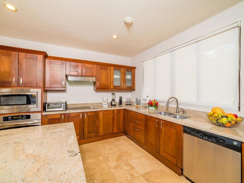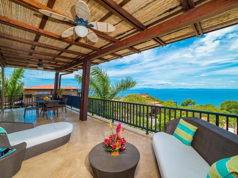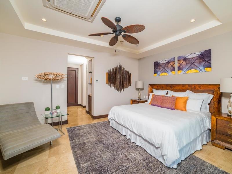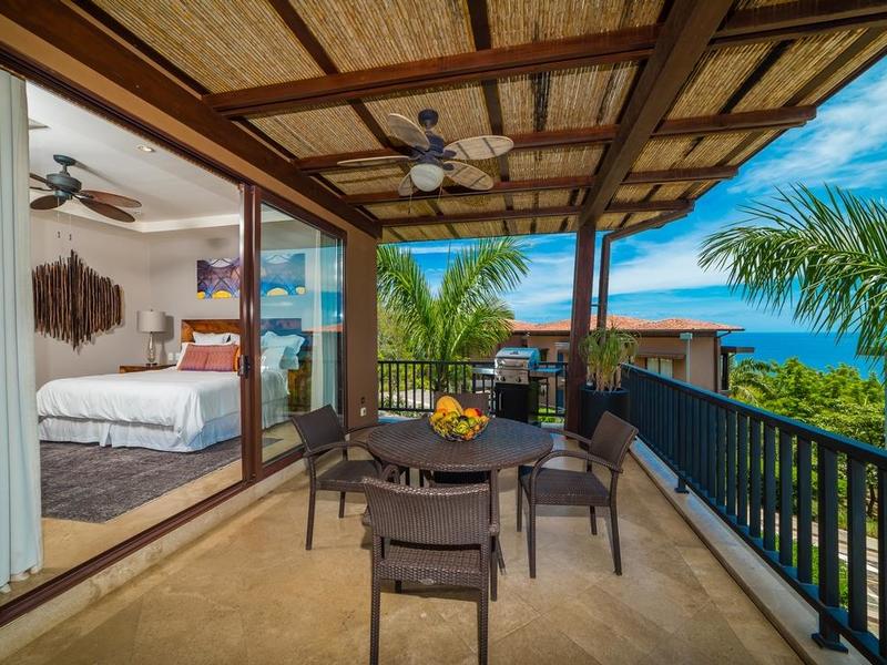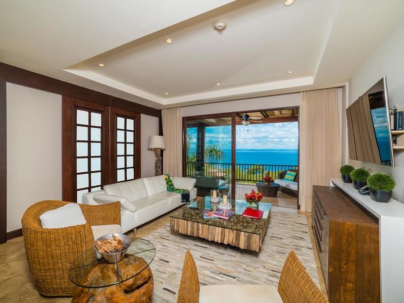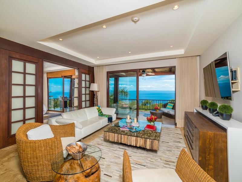 This stunning two-bedroom, two-bathroom condo is the ideal location for you to experience luxury accommodations as well as spectacular views of the Pacific Ocean. Azul Paraso 9A is situated on a super clean peak in upscale Playa Ocotal, letting you to get away from it all while remaining only a five-minute ride from Ocotal beach and restaurants. The chef's kitchen in this apartment is top-of-the-line, with stainless steel GE Profile appliances. The kitchen has an eat-in breakfast island and opens beautifully into the living area, which opens up to a large terrace with dramatic views of the ocean through large sliding glass doors. The living area of this home features large beautiful pocket doors that can open into the master bedroom. The master bedroom has an incredible en-suite bathroom with a rain shower and a separate bathtub for long, relaxing soaks. The master bedroom also has access to the terrace, which provides additional views of the ocean. The second bedroom is large enough to accommodate two full-sized beds. The privacy of this condo, surrounded by nature and with incredible ocean views, distinguishes it as a must-stay for a relaxing vacation. The Azul Paraíso development has a beautiful and unique pool for each separate building within the complex. As a result, your pool is shared with only five other units in your building, ensuring maximum privacy. Only a five-minute drive away, Ocotal Beach is home to the popular Father Rooster's restaurant and Azul Paraso's private beach lounge. Your guests are welcome to dine at Father Rooster's and visit Azul Paraso's beach club, which features volleyball courts, a large playground, a grill and outdoor lounge area, a business center, and kayaks and other fun beach toys. A membership to The Club at Coco Bay Estates is also available, which includes a large tropical pool, restaurant, tennis courts, an exercise room, and access to Playa Ocotal Beach Club amenities. The condo is only a 10-minute drive from Playas del Coco, which has a variety of restaurants, bars, shops, banks, supermarkets, pharmacies, and other amenities. Taxis are available to Playas del Coco, which is only 30 minutes away from Liberia International Airport (LIR). TV