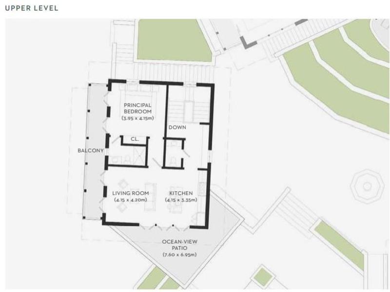 This two-bedroom residence's top-floor patio offers unobstructed views of the Pacific's glistening seas. There's also a second wide balcony with views of the Mediterranean-style architecture in the neighborhood. This home provides one bedroom on each floor. Families and groups can enjoy solitude and comfort.