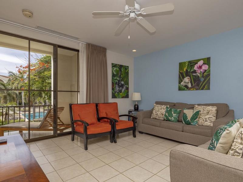Perfectly furnished second-floor lifestyle condo with two bedrooms and two bathrooms and a sizable private terrace. This well-kept condo on the second floor enjoys calm views of the classically styled pool and the immaculately managed tropical grounds with swaying coconut trees and flowering native tropical flora. It also benefits from morning shade and afternoon sunrays. This fully furnished, 1,384 square foot, 2 bedroom, 2 bathroom property is perfect for vacation rentals or private usage. It is tastefully arranged to have a light, tropical feel. The private Beach Club, many Common Pools, Spa and Fitness Center, Tennis and Sport Courts, Walking Trails, and even a seasonal waterfall are among the attractions available inside Pacifico. Relocate into the condo of your dreams, which you deserve, and start earning rental income as you prepare to move to Costa Rica. Easily accessible by foot or car, downtown Playas del Coco offers a large variety of dining options, a vibrant nightlife, shopping, health and dental services, as well as a vast range of watersports and other outdoor activities. It takes about 25 minutes to get to the provincial capital of Liberia from the Guanacaste International Airport (LIR). Start taking pleasure right away.