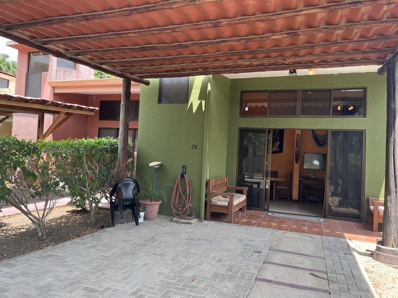 This 2 bedroom, 2 bathroom condo is located in a secure, gated community between Samara and Nosara. Close to 900 square feet, the open concept living area and high vaulted ceilings give a feeling of spaciousness while the patio doors and large screened windows allow lots of bright light and natural airflow. The kitchen is fully equipped and has a custom-built locked storage island. There is a queen bed in the master bedroom, the second bedroom has 2 single bunk beds and both bedrooms have en-suite bathrooms, air conditioning, shelving units, and nightstands. A tile/brick patio offer lots of shaded outdoor living space. Sold fully furnished, all appliances, washer/dryer and furnishings are included.