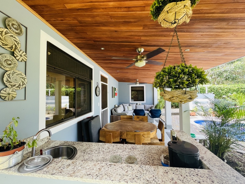 It is important to mention that the owner has just remodeled most of this beautiful home. The house the ceilings are all painted, bathroom cabinets / tiles have been replaced, doors / window frames and kitchen furniture are new. A new granite counter top has also been installed. A new bodega has been added to the house with roof extension to make the patio bigger. And with the new outdoor kitchen you have enough space for entertaining guests.