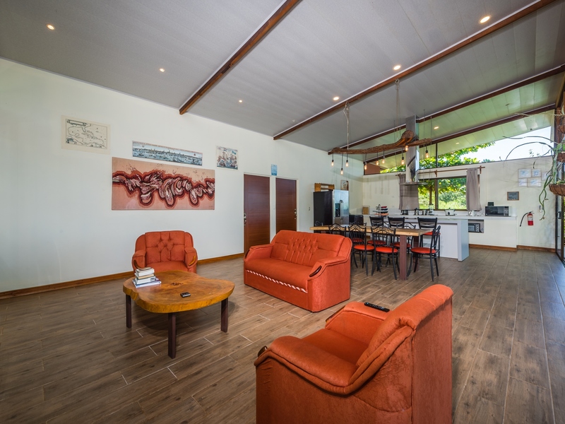 This two bed two bath home is located on one of the highest points at Playa Avellanas. There are both valley and ocean views from this hilltop jungle home. This home could be a home to live year round or used as a vacation rental due to its proximity to the beach. Peaked ceilings and open concept living provide for an abundance of natural light. The home has 2260 sq. ft. of living space plus a lot size of 5100 sq ft. with plenty of room to add more construction. A guest house would bring extra income!
