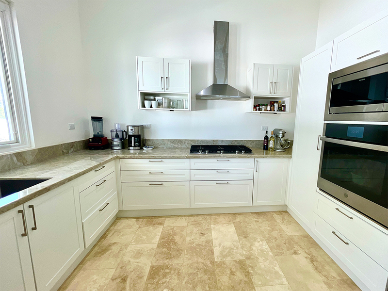 As you enter this Mediterranean dream home the first thing that jumps out is the travertine tile imported from Italy contrasted with the quartz countertops and whitewashed walls. As you walk back into the yard you are immersed once again in the Mediterranean feel with the Coralline white coral stone against the blue sky and ocean view. Feel the breeze as it comes off the ocean in the afternoon while lying in the hammock. Take a dip in the pool at sunset then relax after a delicious meal prepped in the outdoor kitchen. A true tropical oasis where the jungle meets the ocean.