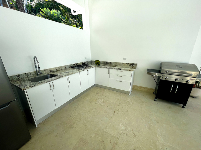 This fully appointed and very comfortable guest house sleeps four. It features a full bathroom, marble shower, granite countertop and sink, walk-in closet, and the same high-quality, dual inverter A/C seen throughout the villa.