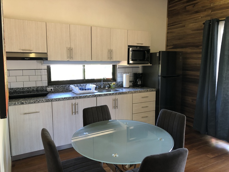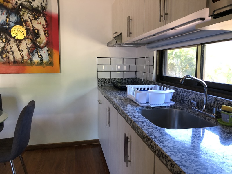 Inside the house we have two medium-sized rooms each equipped with AC and small closets. Next to them is the shared bathroom and shower, beautifully made of ceramic walls and tiled floors . A very comfortable and spacious living room, an open kitchen area, with totally new appliances and furniture are part of the appeal of this beautiful home.