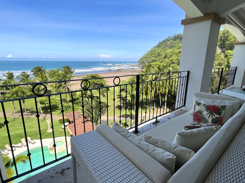 Who says you can't have it all. Luxury, comfort, view, and intimacy all with the best convenience and amenities you will find in any Costa Rica beach town. You will fall in love with the calming sounds of the ocean waves on the top floor of this 3 bedroom beachfront residence. With lush rainforest and nature to your right and world class surfing in front of you, this property is a fit for the entire family. The popular Tres Regalos community features 24/7 security along with common area pools and bbq.
