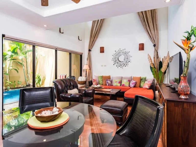 With two floors, multiple terraces overlooking the forest, a private pool and expansive living areas between the two floors, you get the feeling you are really in a home and not just a villa. Cathedral ceilings on both floors give the villa lots of extra space and a grand feeling throughout.