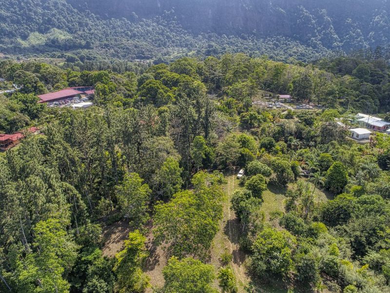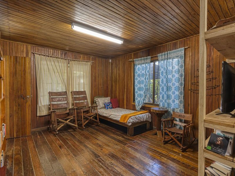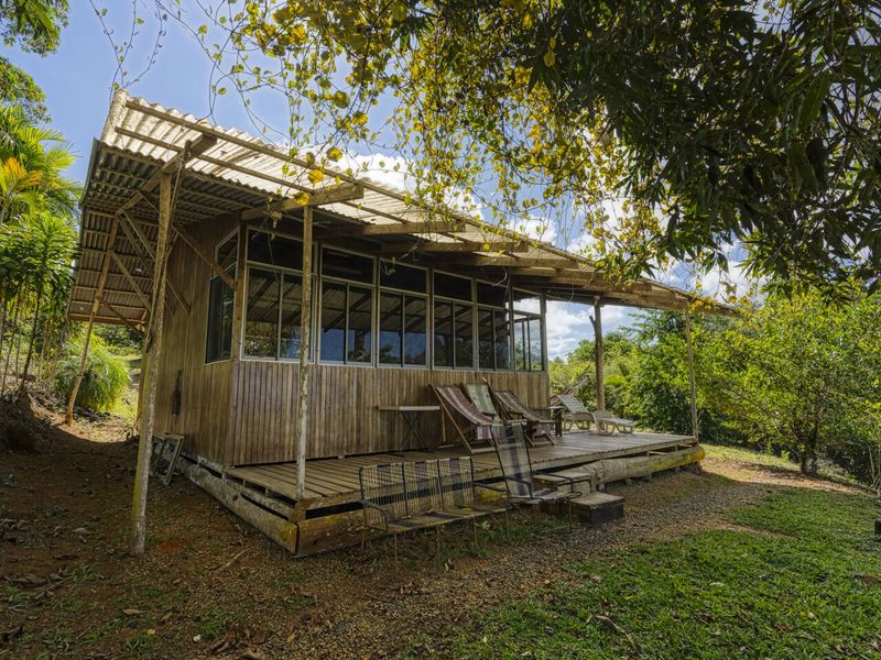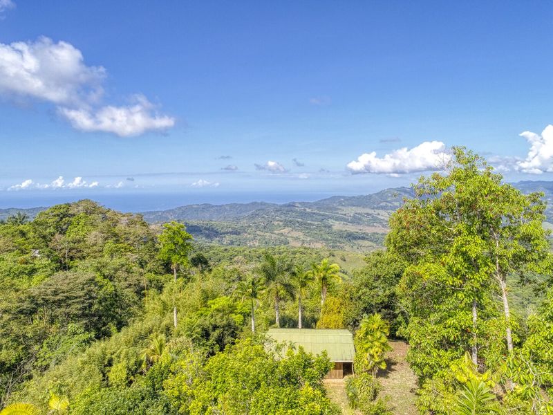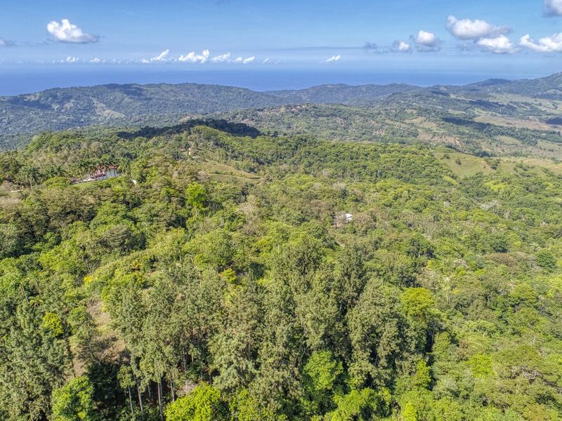 This 20-hectare (49 acres) property is located in Tinamastes at the main road between Dominical and San Isidro and comes with LEGAL Asada water. The 20 hectares are separated in around 2 hectares of “botanical garden” with a traditional wooden house (ocean view), a wooden cabin with an ocean view, a small pool and around 18 hectares of rain forest.