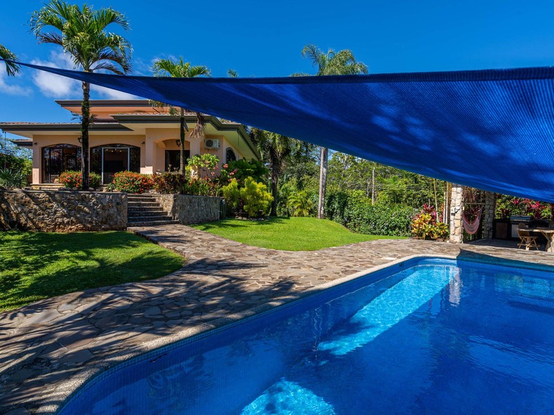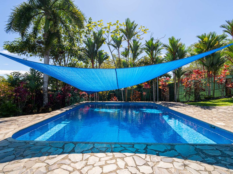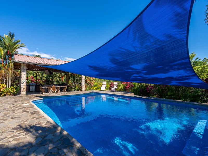 • Extra large size swimming pool with a shade sail installed overhead. New pool filtering and UV element water sterilization