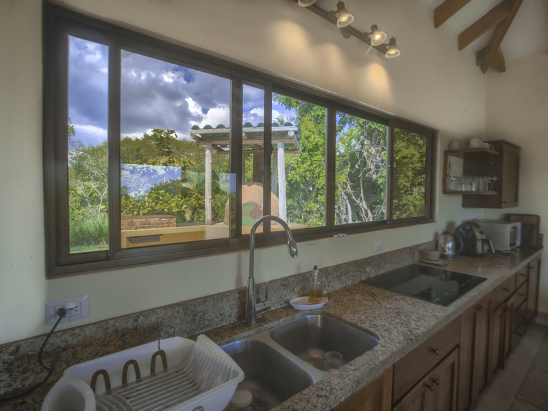 The pool/lounge area has a 40-foot coralina stone terrace with outdoor shower and a wood burning pizza oven and grill. This home is perfect for entertaining and enjoying the colors of the sunsets and the breezes from the valley. The second and third air-conditioned bedrooms are off on their own and each have ample space with built in closets and ensuite bathrooms. Located below is the laundry room, half bathroom, and a secure storage area as well as the carport. A set of stairs will lead you up to a covered roof top terrace providing a built in bench where you can enjoy beautiful ocean views, morning yoga, or reading a good book.
