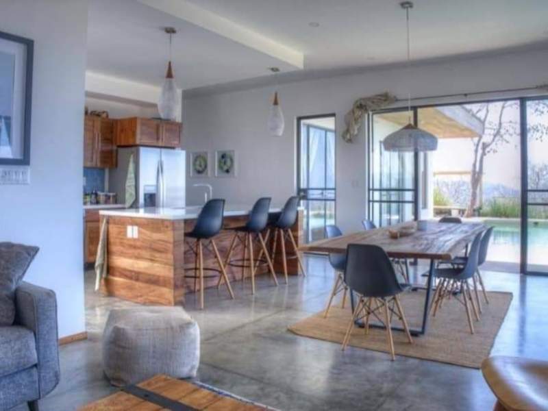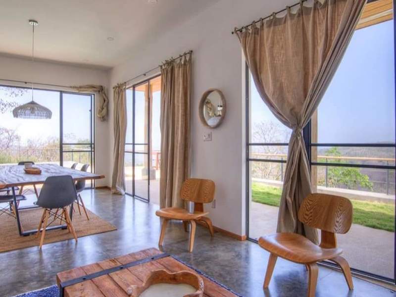 The ocean view house is located in Nosara Hills, a private residential community just above the center of Nosara surrounded by undeveloped forest. Built in 2018, the home offers 187 sqm of living space: 3 bedrooms, 2 bathrooms, large doors and numerous windows to take advantage of the cool mountain breeze. The pool and terrace measure an extra 50 sqm.