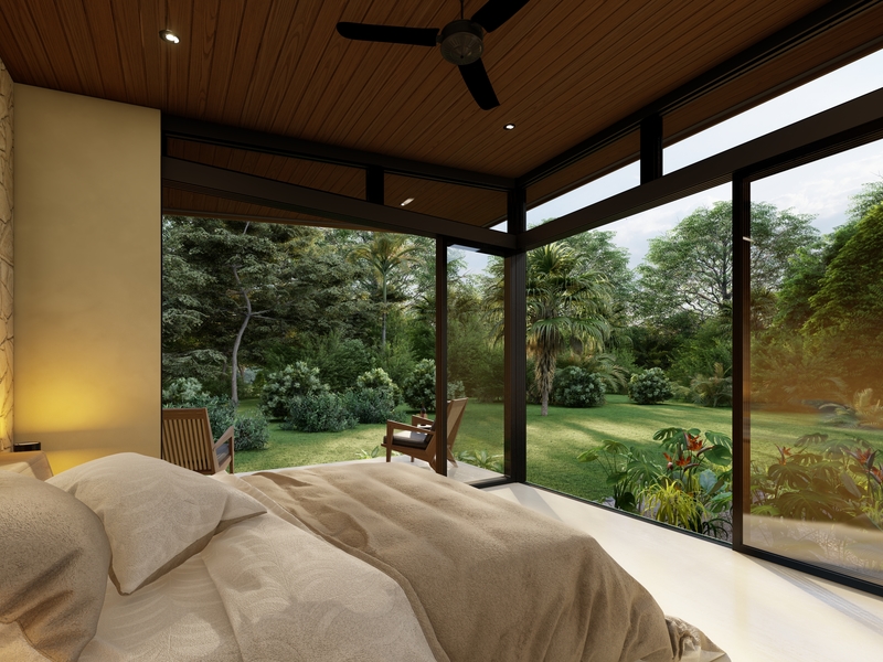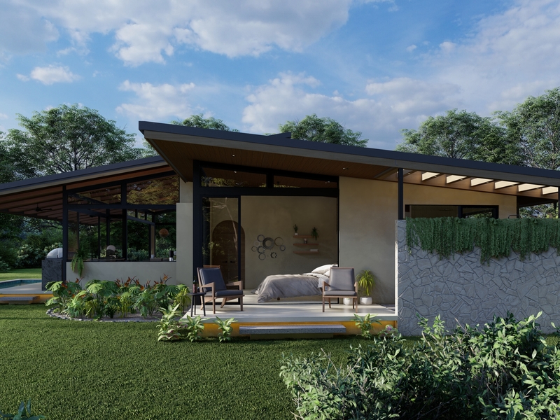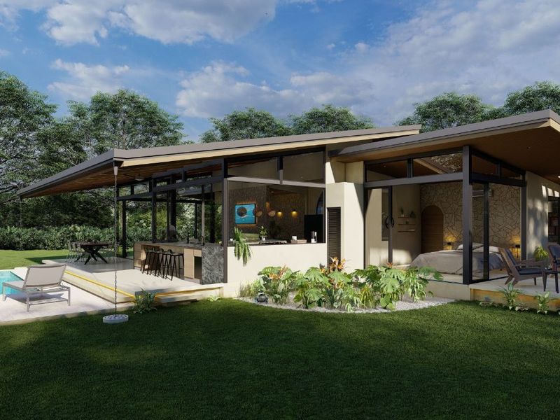 Fall in love with this elegant, modern jungle beauty. Natural stone finishes give this home beautiful curb appeal. Modern architecture contrasts beautifully against the soft, organic finishes throughout. Expansive floor plan makes use of every square foot in this 3 bedroom bungalow. Floor to ceiling windows let in all of the natural light. Your master bedroom features a walkout patio for you to wake up & enjoy the views of the jungle, watch the toucans fly by or maybe catch sight of the howler monkeys passing by in the treetops.