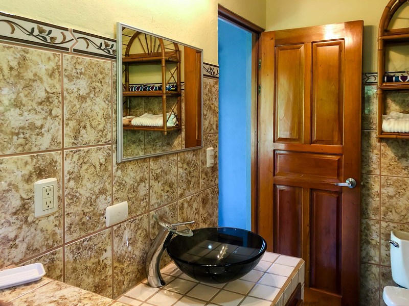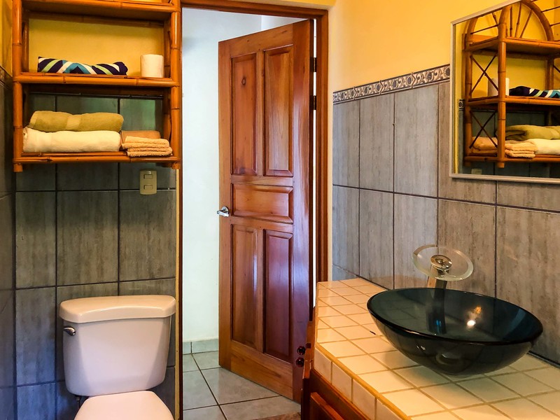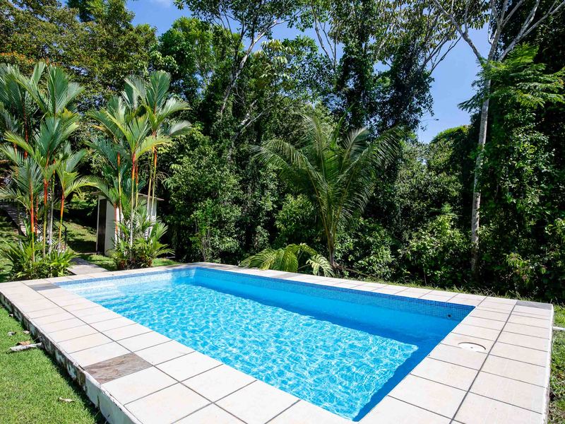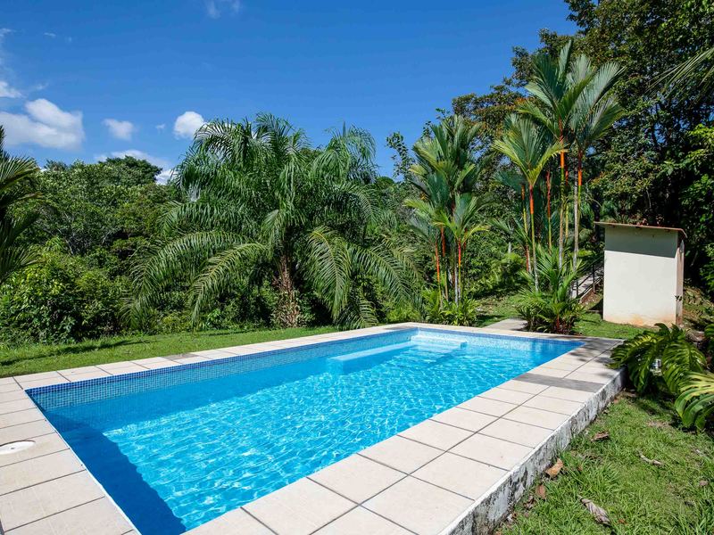 Step outside to the covered patio area with a spectacular view of the surrounding mountains, and watch the brilliant sky at sunset, or enjoy a family meal. The setting is quiet and tranquil allowing you to enjoy the beautiful sounds of nature Costa Rica is known for. The landscaped path leads to a large inviting pool which is perfect for the family to enjoy while taking in both jungle and mountain views; look closely and you're sure to spot a variety of birds or other wildlife that make this secluded area their home. Alternatively, take a hike down to the creek and cool off in the flowing fresh water.