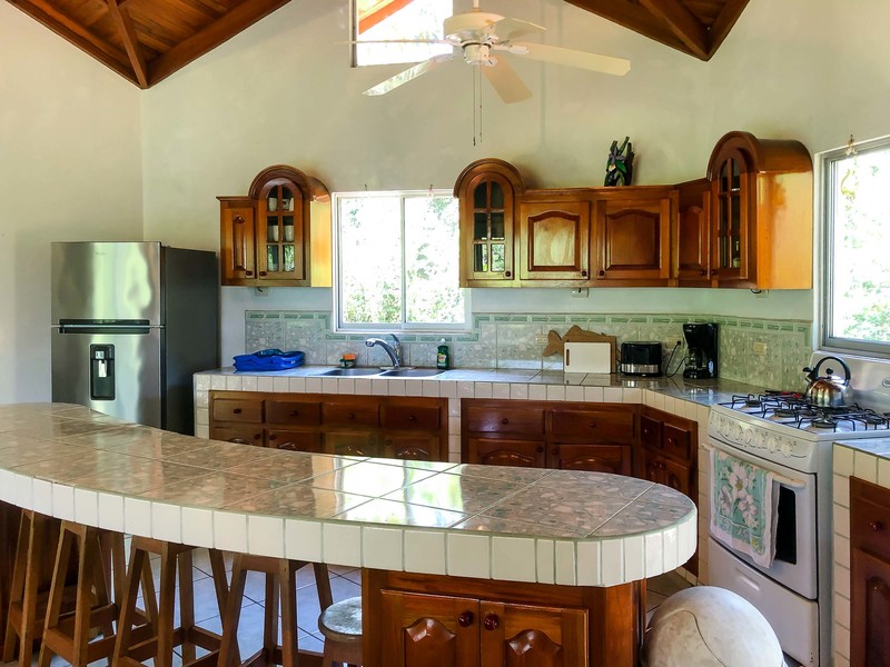 The manicured lot surrounding the home features both ornamental and fruit trees attracting birds and wildlife, and has plenty of room for expansion and outdoor entertainment areas. The property is located in the tranquil development of Finca Maranon, known for its abundant wildlife and peaceful atmosphere, and there are established nature walking trails near the property. This home and surrounding land is ideal for those seeking privacy and easy access to amenities, with the added bonus of a great income opportunity. Guests will enjoy being close to town with its many restaurants and activities, while the beach is just a 30-minute walk away.