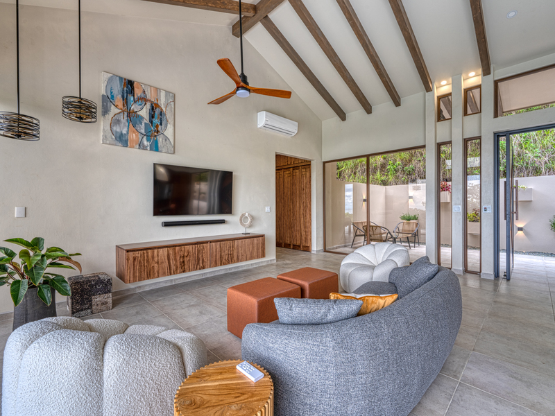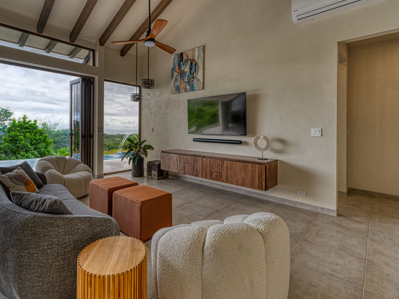 The living room features high beam ceilings, drawing your eye upwards and making the room feel even bigger than it is. With the entire length of the living room and kitchen being one big glass door you are able to take advantage of bringing the indoors out....or the outdoors in.......fully taking in the natural beauty surrounding you and the spectacular ocean view.