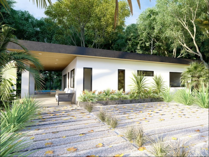 These new construction homes offer spacious indoor/outdoor living on one level, built to US standards with high-end finishes throughout. Additional upgrades are available. Close to all schools, transportation, shopping. The open floor plan in the living room and kitchen offers indoor/outdoor living space with views of the garden and pool. Floor-to-ceiling glass sliders open up to a patio shaded with a pergola. The master bedroom glass sliding doors open up to its own private patio, facing the pool. The bedrooms are tucked away for privacy and the master suite includes a walk-in closet. The home is surrounded by shade trees and lush forests in its natural setting. This is the best value in Playa Grande available.