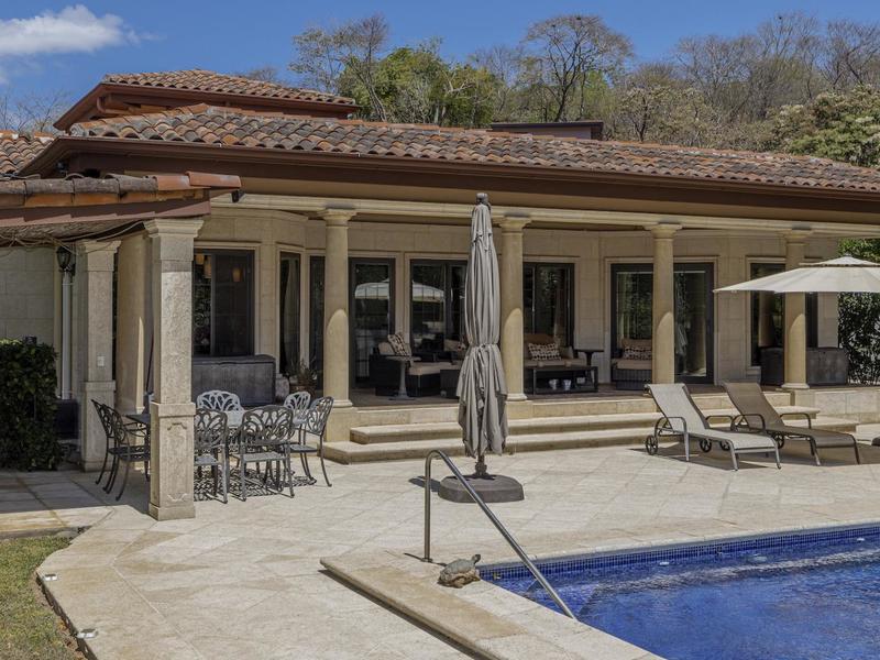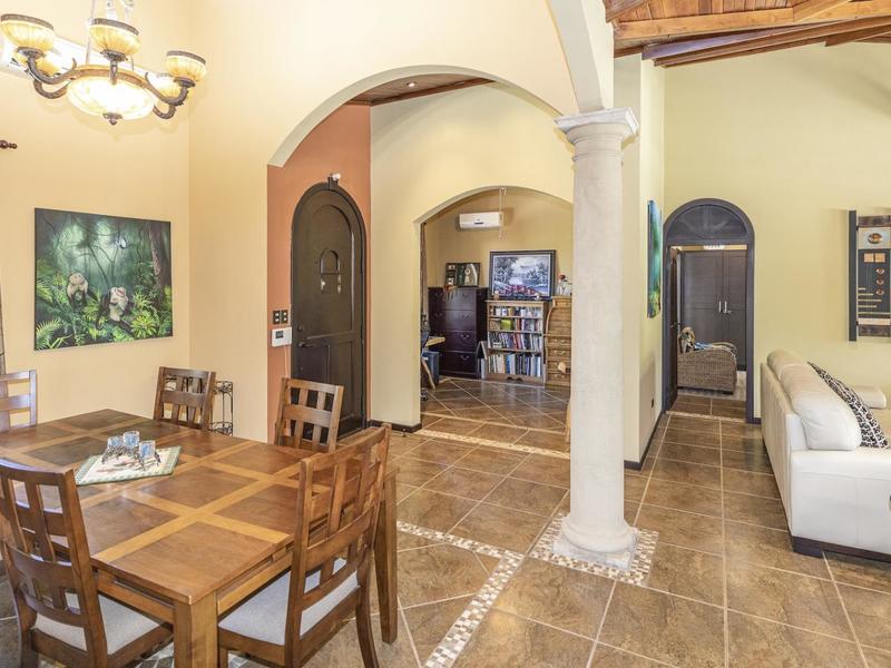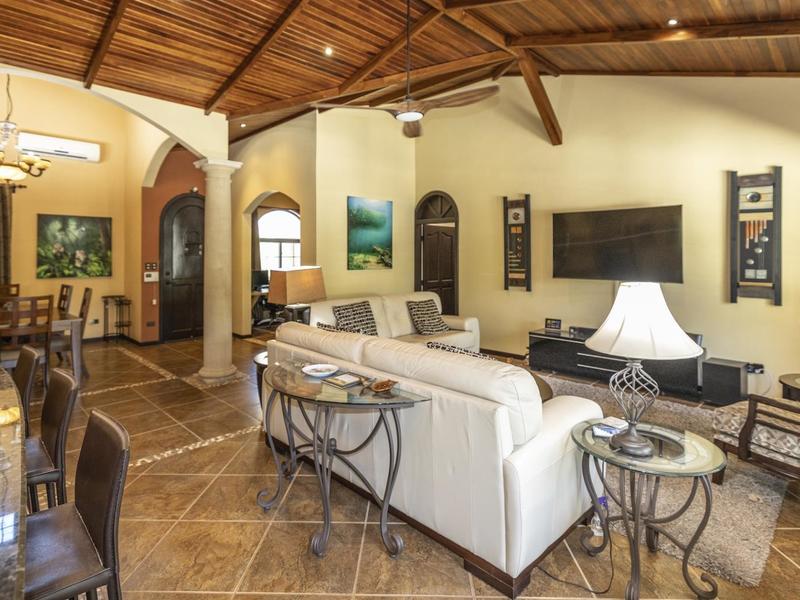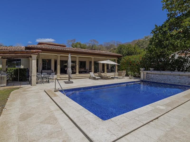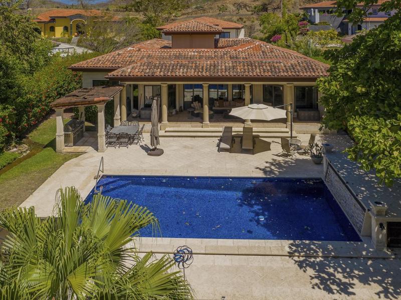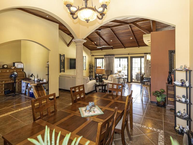 Magnificent one-story luxury Tuscan-style villa with expansive indoor and outdoor living areas. Bring your relaxing "A" game to this stunning luxury home with a wide open floor plan spread out over 3,000 square feet with 3 bedrooms, 2.5 bathrooms, an oversized attached 2 car garage, and an enormous backyard complete with an expansive covered terrace, BBQ pavilion, and huge pool. As you approach the great room, you will notice a vaulted ceiling dining space, a separate office, a huge living room, and a beautifully designed kitchen with a sit up bar and breakfast nook. This immaculately kept property lies on a 1,640 square meter lot and features ceramic tile and marble floors, granite and marble countertops, and custom wood cabinetry and doors. Enjoy Pacifico's first-rate amenities, such as the Beach Club Bar and Restaurant, Tennis & Sport courts, and Poolside Bar and Grill. In Playas del Coco, you can walk to a wonderful selection of local restaurants, as well as a variety of shopping opportunities and services. It is only 20 minutes to Guanacaste International Airport (LIR), and it is accessible to local medical clinics and full-service hospitals. Now is the time to enjoy this house!