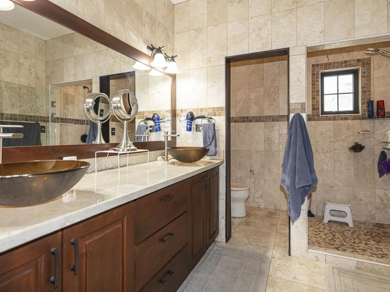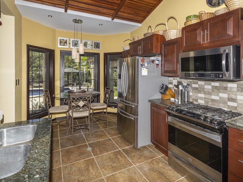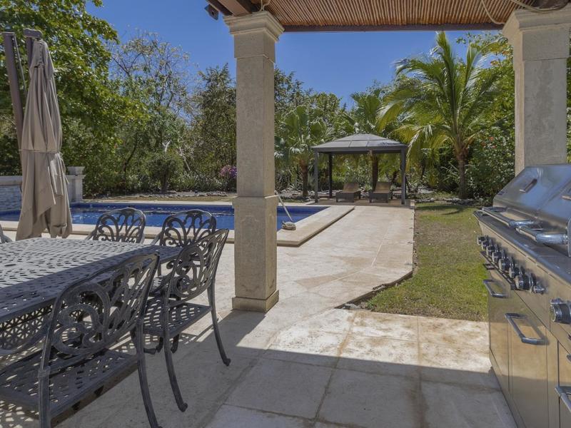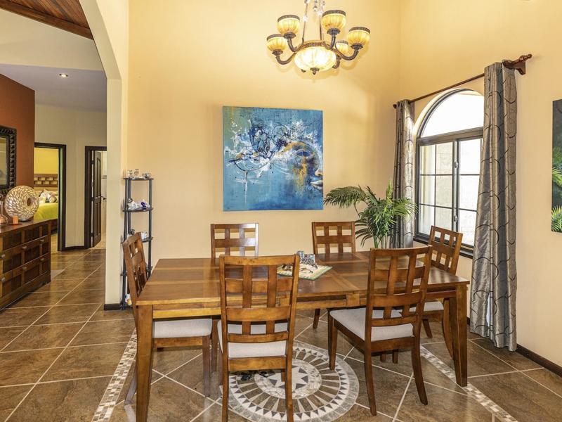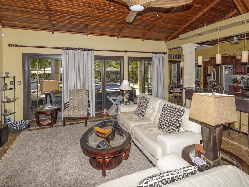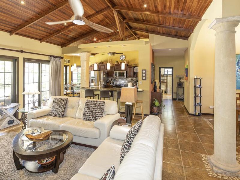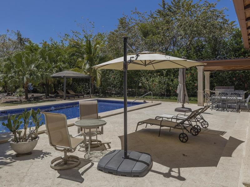 Magnificent one-story luxury Tuscan-style villa with expansive indoor and outdoor living areas. Bring your relaxing "A" game to this stunning luxury home with a wide open floor plan spread out over 3,000 square feet with 3 bedrooms, 2.5 bathrooms, an oversized attached 2 car garage, and an enormous backyard complete with an expansive covered terrace, BBQ pavilion, and huge pool. As you approach the great room, you will notice a vaulted ceiling dining space, a separate office, a huge living room, and a beautifully designed kitchen with a sit up bar and breakfast nook. This immaculately kept property lies on a 1,640 square meter lot and features ceramic tile and marble floors, granite and marble countertops, and custom wood cabinetry and doors. Enjoy Pacifico's first-rate amenities, such as the Beach Club Bar and Restaurant, Tennis & Sport courts, and Poolside Bar and Grill. In Playas del Coco, you can walk to a wonderful selection of local restaurants, as well as a variety of shopping opportunities and services. It is only 20 minutes to Guanacaste International Airport (LIR), and it is accessible to local medical clinics and full-service hospitals. Now is the time to enjoy this house!