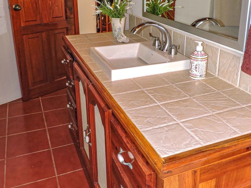 This beautiful home has 2 bedrooms and 2 bathrooms in the first floor and a large bedroom loft with a cool little balcony that overlooks the pool and the gardens. The property includes a 2 car covered parking area, a covered rancho hosting area near the pool and amazing lush tropical gardens.
