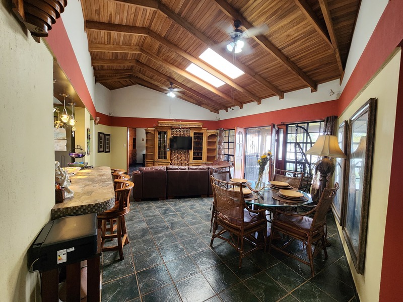 Charming TURNKEY house located on a quiet dead end street, 1 kilometer from the main road in Ángeles de San Ramón, just minutes away from dining & entertainment. This amazing 7,000 square meters property features a beautiful 148 square meters home with 3 bedrooms and 2 bathrooms. The main entrance greets guests with a beautiful garden pond. A wooden open-concept kitchen with breakfast bar and lovely living room complete this gorgeous home. The cozy terrace overlooks the panoramic mountain views and landscaped gardens. The outdoor fireplace provides a great ambiance to enjoy the cooler air while sitting by the crackling fire. ¡Everything is included in the sale!