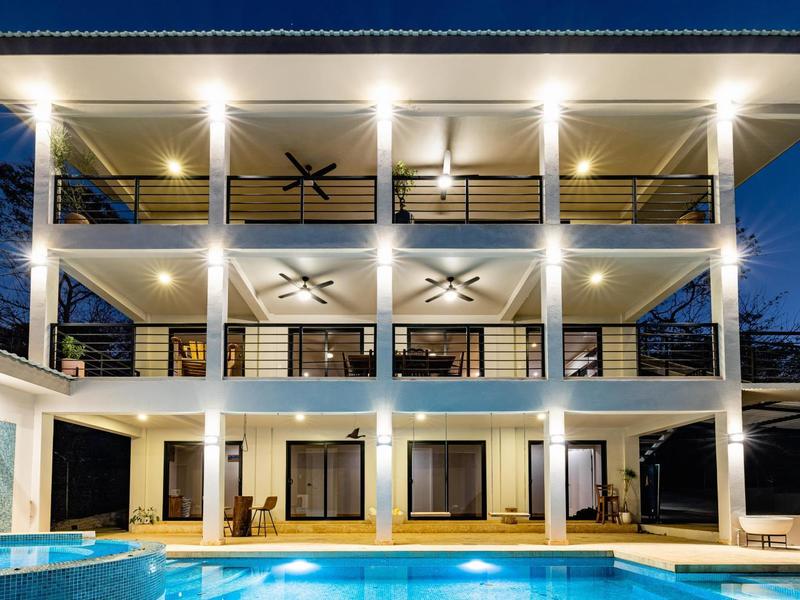 Below the main house on the property is a giant warehouse where it could be used for fun and entertainment or for business. Currently, it has a large skateboard ramp, and a studio apartment and the front part of the building had been used to sell ceramic pots. Located on the main road to Hacienda Pinilla and Avellanas beach, this would be a great spot for a restaurant, coffee shop, bicycle or ATV rental, tour company, a woodworking shop, a car repair shop, a gymnasium - anything you can imagine! Welcome to Casa Toronja (Grapefruit), a stunning and unique property with a tropical modern 3 bedroom, 2.5 bath 3 story 3000qft home covered in fruit trees and close to some of Costa Rica’s best surf spots. The property is centrally located only fifteen minutes from Tamarindo, 5 minutes to the grocery stores, fruit stand, and restaurants of Villa Real, and less than 10 minutes from world-class surfing and the gorgeous white sands of Playa Avellanas. As a bonus, this property comes with a giant 3000 sq ft warehouse that can be used for fun and enjoyment or to run a business out. This unique property has many different layers and opportunities. Imagine living here, among the tropical trees, with the mountain views, so close to everything you need. The beach life is calling you! What are you waiting for?