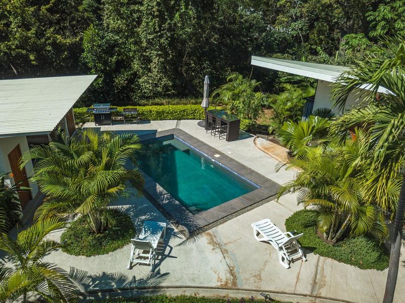 Built in 2021 this home is located in the Escondido (“hidden”) section of the gated Rancho Villa Real, with a total of 3 bedrooms and 3.5 baths in two modern buildings. It sits on a 6,191m2 (1.53 acres) forested lot less than 10 minutes from Playa Tamarindo. Casa Réal was designed for professionals and empty nesters with extended families and friends who want to share a destination property surrounded by nature while centrally located to all the area amenities. Within a few minutes drive you can be at grocery stores, medical facilities, restaurants, bars, fruit stands, and some of Guanacaste's best beaches!