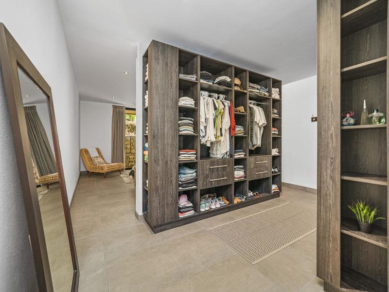 - Master bedroom with king bed and custom-design headboard, walk-through closet featuring custom built-in shelving and generous ensuite with private toilet