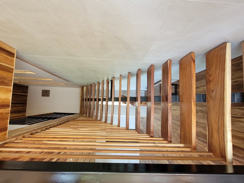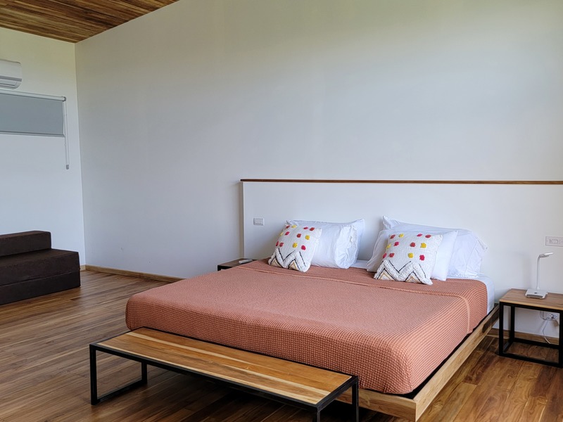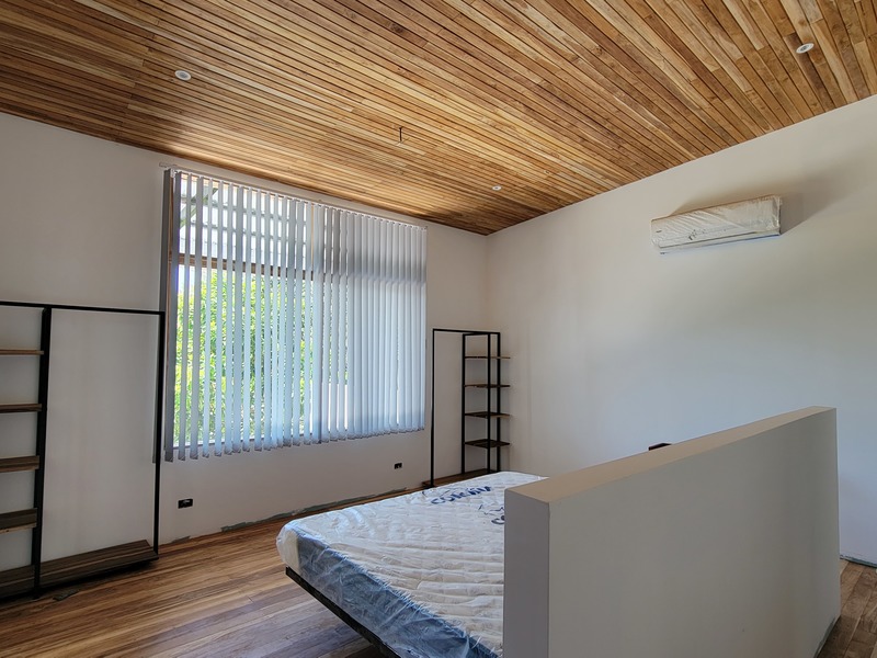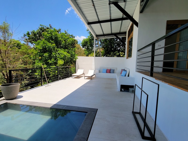 A set of beautiful wood stairs leads you up to the second floor landing leading to two separate huge master bedroom suites, each with built in closets and en suite baths and giant picture windows to admire the beautiful views. The bath rooms are sleek and modern with a European flair, having been designed by a French architect. Though surrounded by jungle, you are living in comfort and style.