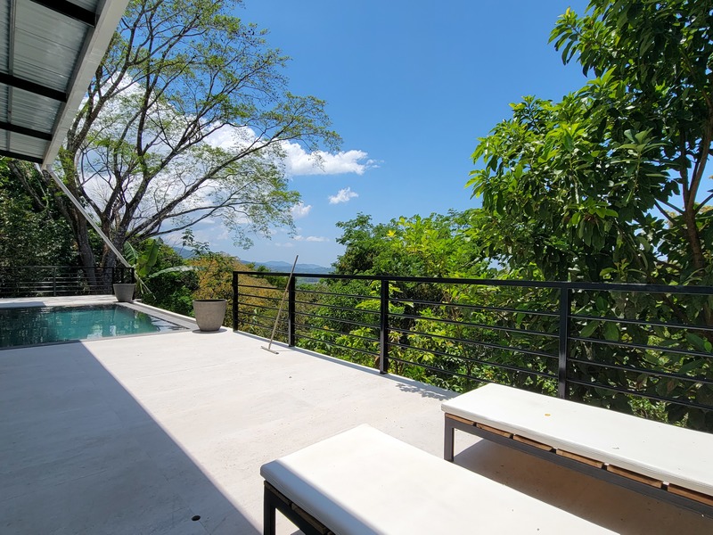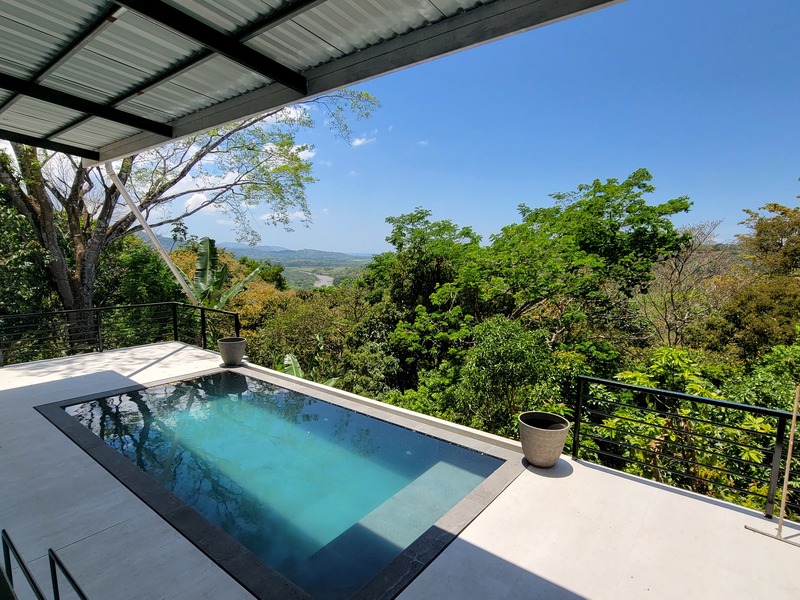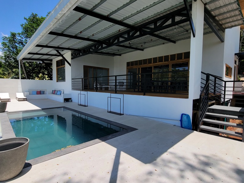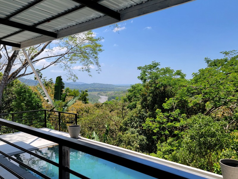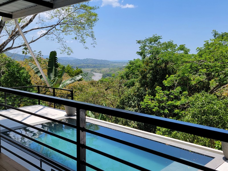 This brand new ultra modern home offers breathtaking views of the rainforest river valley and ocean just beyond. Located in the hills above Carara National Park, it is just 15 minutes from some of Costa Rica's most coveted calm water beaches, Playa Agujas, Playa Mantas and the hidden gem, Playa Bochinche. And the international airport in San Jose is just 45 minutes away, so you can have your toes in the sand or your sights in the jungle within one hour of leaving the airport! Even better, all the shops, clinics, restaurants, nightlife and eco adventure tours of the bustling beach town of Jaco are just 30 minutes away. And if you like to play tennis, golf or go sport fishing, Los Suenos Marriott Resort and Marina is just 20 minutes away in Herradura.