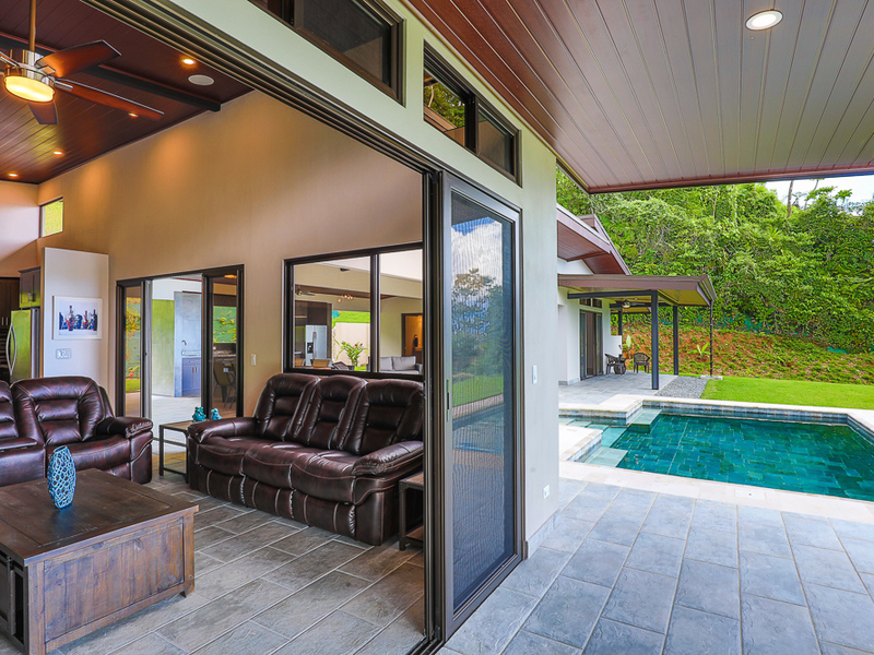 Brand new home with 3 master bedrooms all with 3 on-suite full baths plus two half baths, indoor and outdoor living rooms and kitchens, beautiful pool, large garage, and nice yard space. Located only 8 minutes from the Uvita center and all the amenities of the area such as: restaurants, shops, supermarkets, pharmacies, doctors, dentists, hardware stores, mechanics, and more. Within 10-15 minutes of 6-7 beaches including all the beaches of the Marino Ballena National Park. Outstanding ocean views of the famous Whale’s Tail at Marino Ballena national park; plus the Uvita town center with lights at night. Sunsets can be enjoyed part of the year directly into the Pacific Ocean and the rest of the year you get the amazing colors behind the mountains. The elevated setting at about 900 feet offers perfect ocean breezes and a moderate climate to experience the indoor/outdoor lifestyle that Costa Rica is all about!!