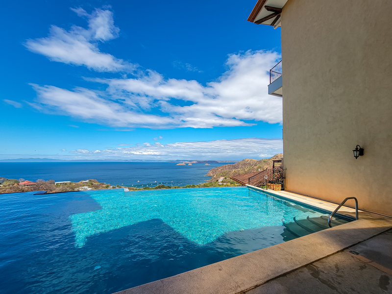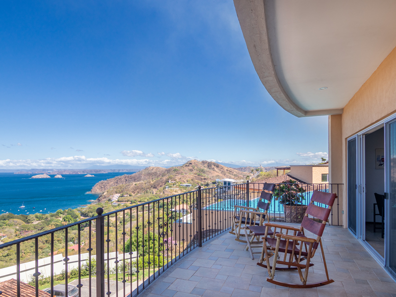 Enjoy luxury living in Corona Del Mar gated development with only 12 units offering the best ocean views’ condos in the area. Be amazed by the spectacular panorama of the Pacifico Ocean, mountains and Santa Rosa National park as you enter the main door of this two-level 2,860 sf fully furnished and equipped unit. Living and dining areas offer ample space for entertaining and open up to a large balcony. The spacious kitchen has hardwood cabinets, granite countertops and stainless-steel appliances. One of the bedrooms is conveniently located on the main level. Second level accommodates three more bedrooms. The master suite includes a walk-in-closet and en-suite bath. All upper bedrooms have good size patios to enjoy the magnificent views all around. This condo is located very close to the oversized infinity pool that comes with a lounge and BBQ areas. Each unit has a separate enclosed garage and a storage unit. The development offers an equipped ocean view gym, gated entry and a guard on site. Only few minutes to most beautiful beaches, 10 minutes from center of Playas del Coco with all the amenities, and 30 minutes to Liberia International Airport. Don’t delay living your dreams and call today to inquire!