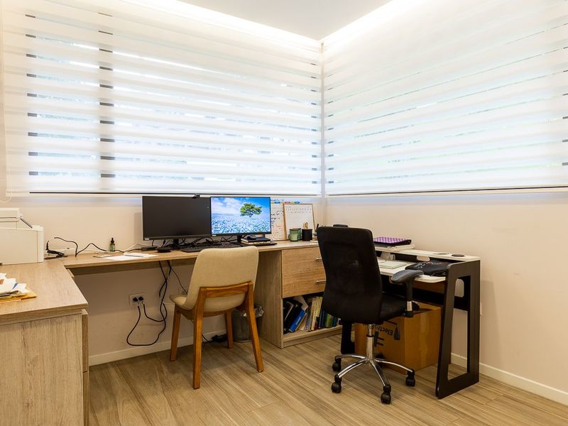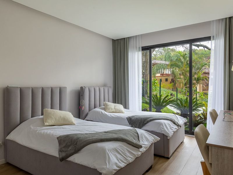 It shows excellent finishes that can be seen along the way. The spacious integrated kitchen, with white quartz countertops, storage space, grinder, cabinets with cold water and instant kettle, a bar with armchairs that offer the greatest comfort and at the same time are part of the decoration of the space. Incorporated with a dining room, with large windows, family room and sliding doors that open to the terrace with a beautiful panoramic view of the city and the mountains. The hallway leads to the master bedroom, with its own terrace, overlooking the pool and the park's ancient trees, the main bathroom with a bathtub, a thermally insulated steam shower, a pendant to warm the towels, an independent toilet and two sinks, followed by of the large walking closet. Next to the main room an office with air conditioning. Always on the same level, in the opposite wing, three good-sized bedrooms, one with a walking closet, the other two with large closets, each with its own separate bathroom, air conditioning, and windows with access to the gardens. Going down to the lower level of the house, always surrounded by a garden, a heated swimming pool, with a large closed social area with glass fitted with furniture, space for a microwave, ice machine, dishwasher, cellar and wine cooler and space for a large table with a social bathroom for visitors. Additional service room and bathroom and a multifunctional space for a gym or any other use that you want to give it. The house has space for three vehicles indoors and two more outside. In addition, being located at the end of the street, many more vehicles can be parked outside in case of having guests. It also has a system of automated irrigation with rain sensors and automatic lighting throughout the external garden, and patio light and water reserve tank. The house is also special for your pets, it includes a special entrance door to give pets freedom to come and go and Fences in the ground to keep dogs safe in the yard.