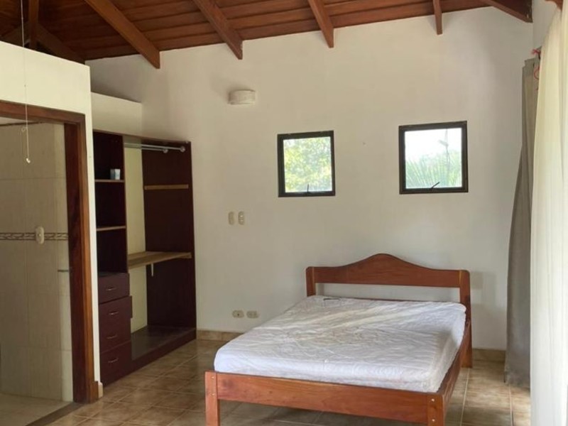La Joya de Esperanza #2 is a beautifully designed all-concrete style house with a clay tile roof and beautiful wood overheads. Tile floors through the entire home and independent AC units for all bedrooms as well as a large 35,000 BTU AC unit for the Kitchen and living room. The home is located in the Esperanza area of our beach community only a 5 min drive to the beach and surf here in Playa Guiones! The main house consists of a large Living Room and kitchen area with 3 bedrooms and 3 bathrooms. The 4th bedroom and bathroom is a private studio apartment located above the main house on the back side and accessible from the parking area with a private staircase.