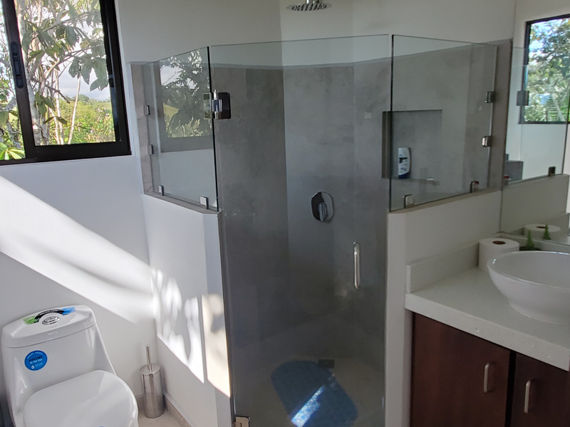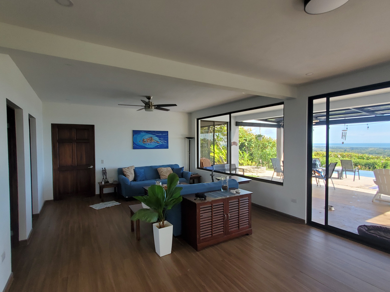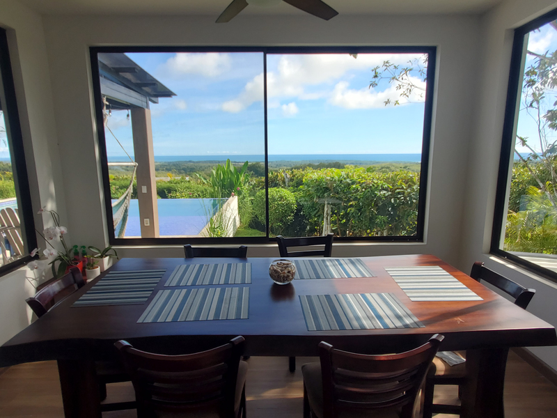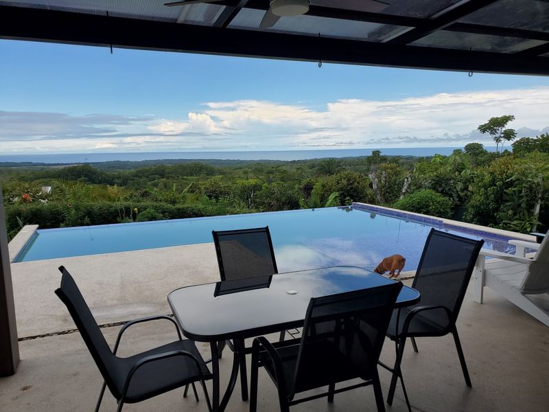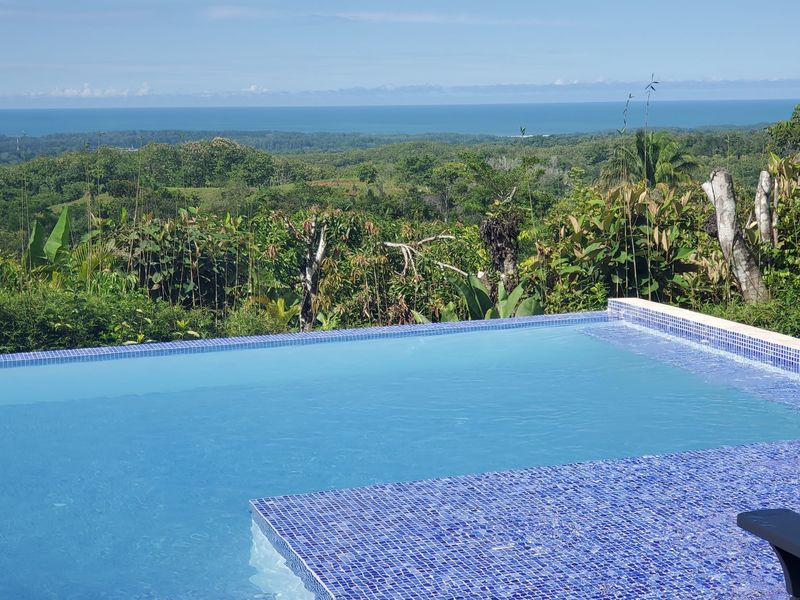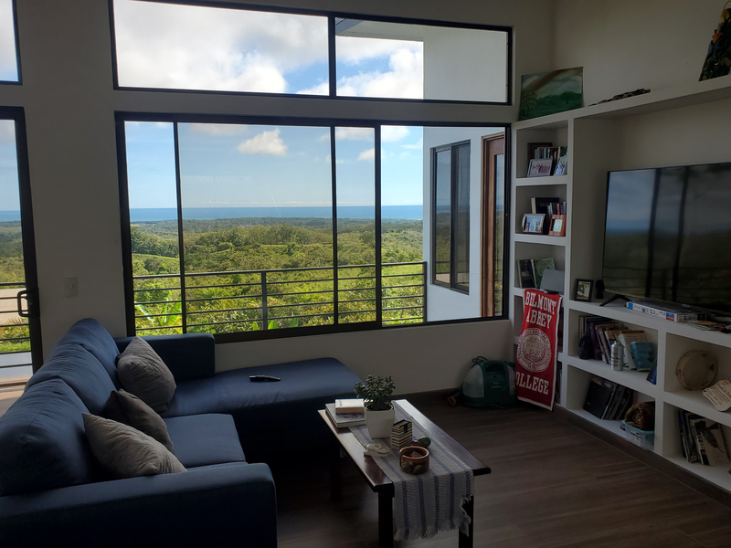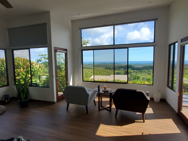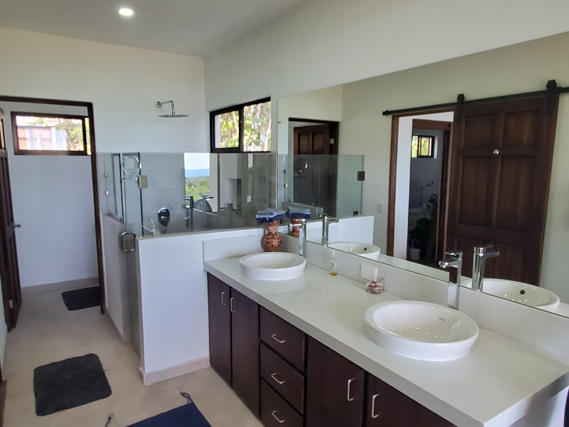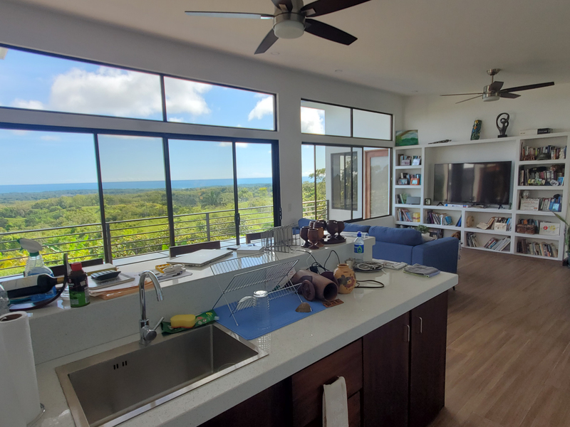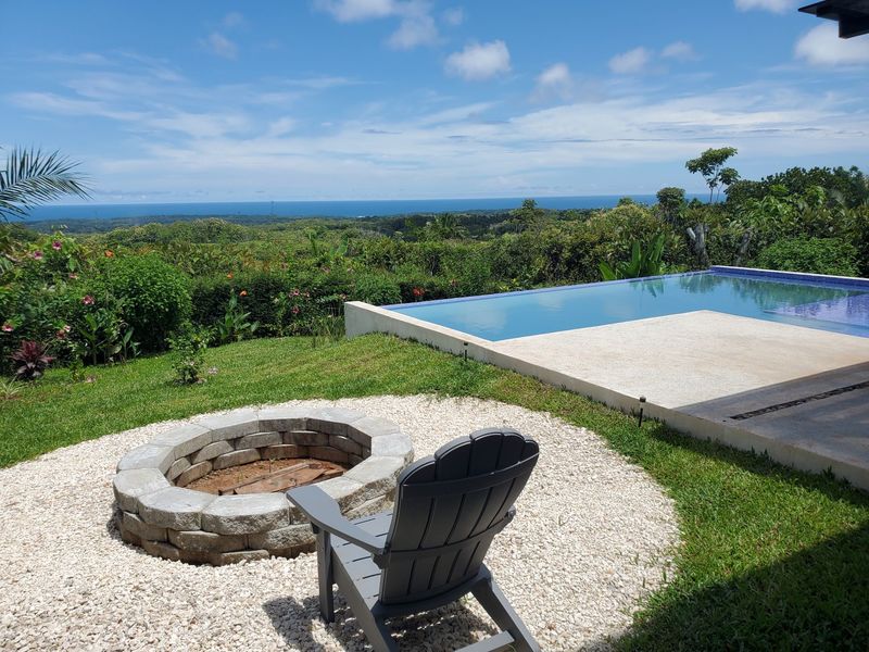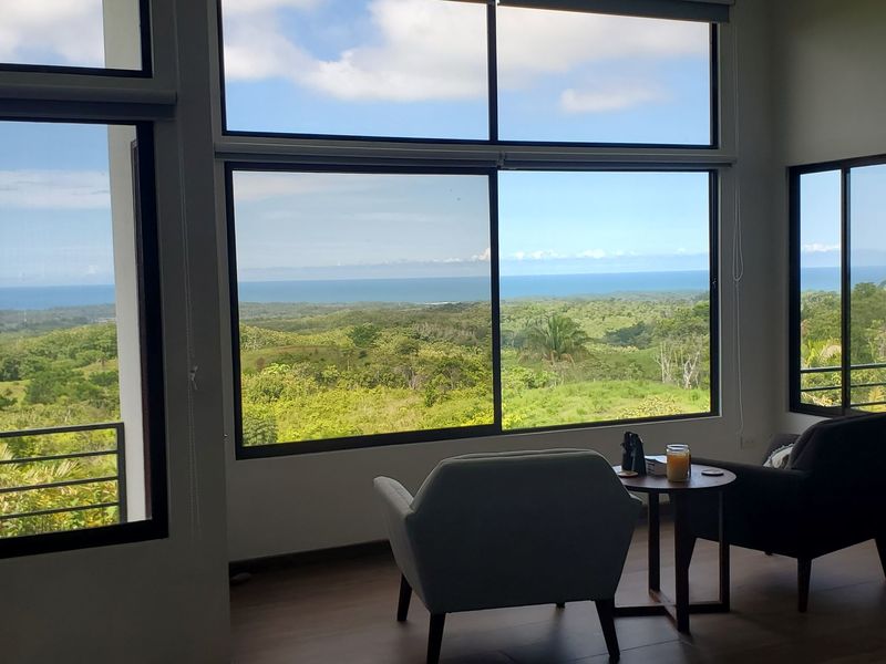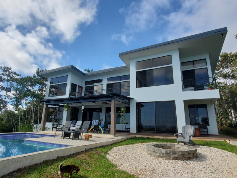 This stunning brand new modern home features breathtaking 180 degree ocean views from every room! Overlooking the magnificent Central Pacific coast in Costa Rica, this beautiful home features three master bedroom suites, each with huge walk in closet and beautiful en suite bathroom. It also has two additional half bathrooms, a large entertainment wet bar, laundry room, 2 car carport, infinity edge pool, fire pit, electronic gate, open concept kitchen with quartz countertops and separate guest house for guests or caretaker.