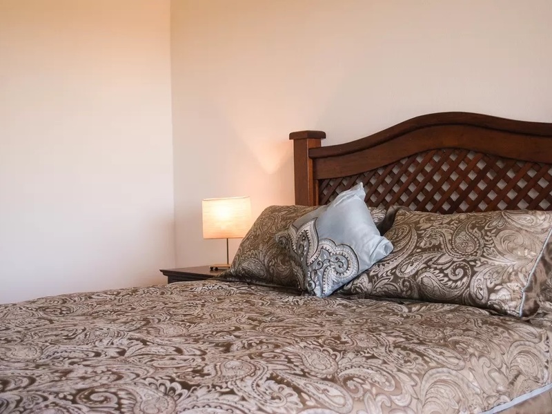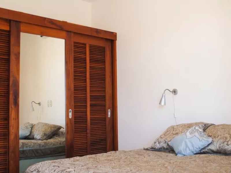 The master suite boasts a wonderful walk-in closet made from hardwoods, a spacious bathroom with dual vanity sinks and a king sized bed. The exposed beams and high ceilings continue here also. The sliding doors lead to a patio where you can see the Flamingo marina as well as the ocean on the Potrero side.