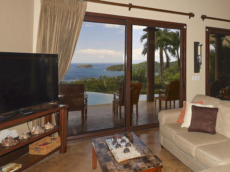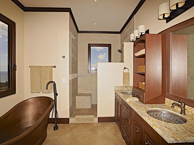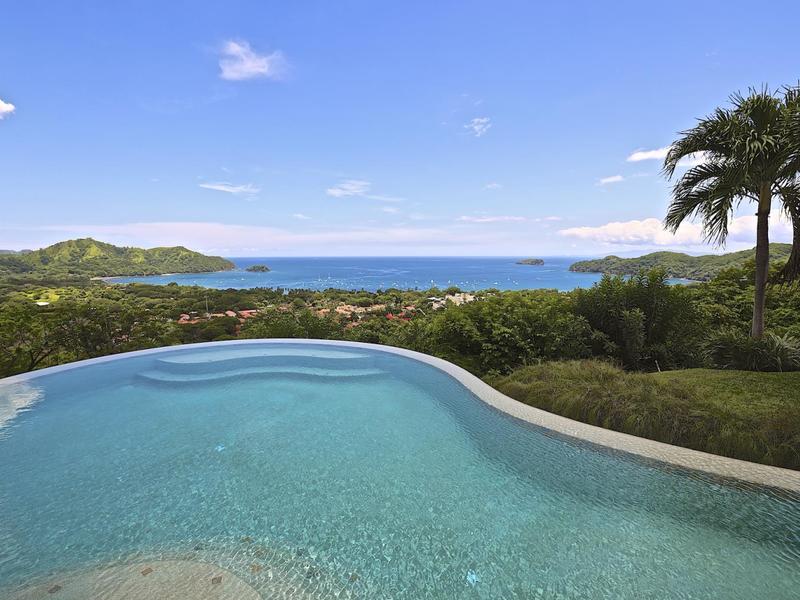Best of the coveted gated development with an exclusive beach club and myriad of amenities, enjoy the panoramic ocean views and sunsets from this 4 Bed, 4.5 Bath Luxury Villa at the Top of PACIFICO. This stunning ocean view villa is 3,500 square feet inside with a total of 5,200 square feet including the terraces and garage and is perched at the very top of the prestigious PACIFICO development, built with extreme attention to detail with only the finest materials, furniture and fixtures. After parking in the oversized 3-car garage you enter into the vaulted ceiling great room that houses the living room, dining area and large cooks kitchen all opening out onto the large covered terrace and infinity edge pool complete with built in BBQ and wet bar. This one of a kind tropical villa is fitted with custom hardwood cabinetry, doors and trim, travertine marble flooring inside and out, granite and marble counter tops among other feature too numerous to list. The main master bedroom suite is on the first floor and features a large private ocean view terrace and has vaulted recessed ceilings, a large walk-in closet with custom-made wardrobe cabinets along with a free standing copper tub and separate ocean view shower. Also on the main floor is a second master bedroom with a luxurious bathroom, walk in closet and a nice ocean view. Also on the main floor is an office, powder room, laundry room and a large storage room or owners closet. Upstairs there are 2 more bedrooms, each with private luxury bathrooms, closets and private ocean view terraces. As an owner in Pacifico you enjoy many amenities like the private Beach Club, various common Pools, Tennis Courts, Fitness Center, Walking Trails and a Waterfall. Move in to your dream home you have been planning for years to enjoy on vacation or in retirement or earn rental income while you plan for your eventual move to Costa Rica. All this is just minutes to various beaches, within quick proximity to the Liberia Airport, hospitals, services, restaurants, nightlife and watersports of the Papagayo area. Don’t hesitate to start your dream life today.