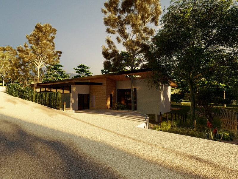 From the moment you pull onto the 2 car parking area you will be greeted by a natural feel with the backdrop of tropical woodland. The styling of the home is apparent immediately, warm tones from the hardwood teak inlay under the roof, masculine touches with the darker tones, the textured walls and the innovative combination of wood, glass and natural wall.
