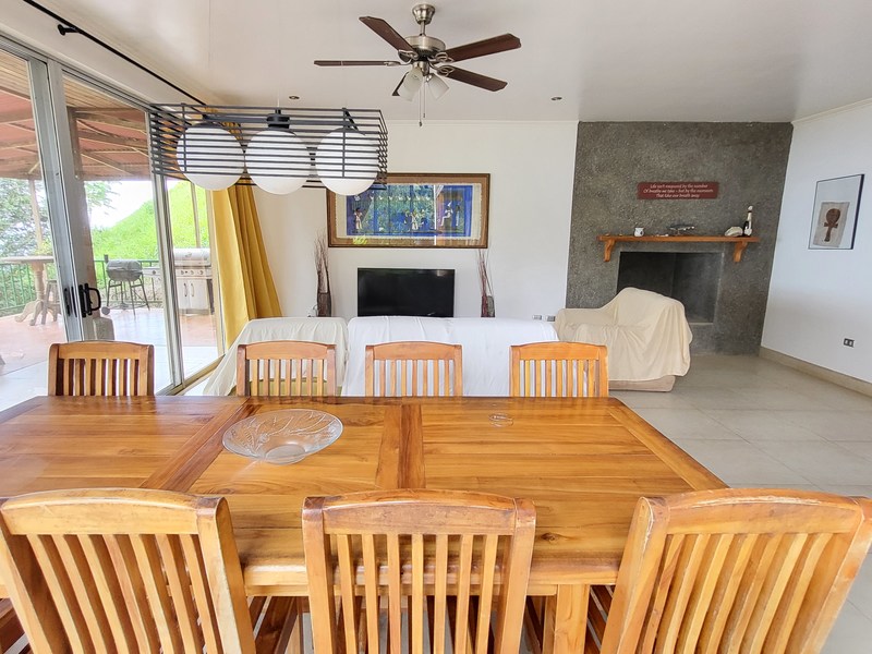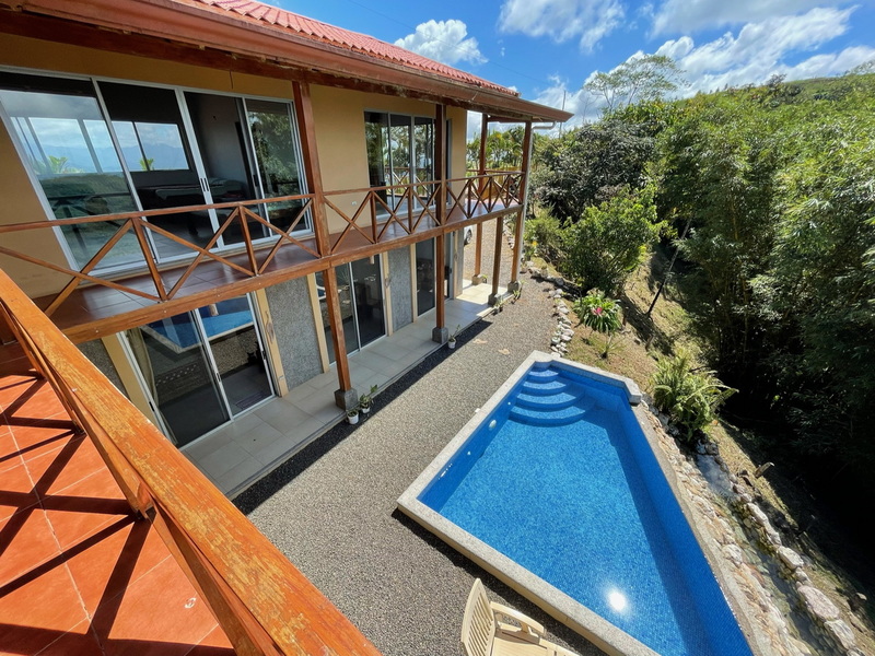 Do you dream of a home with views of the ocean and mountains? At 2000ft elevation, this quality built home has incredible views of both! The west view extends over the ocean to the Nicoya Peninsula about 25 miles away and south/east to mountain and ocean views as far as the eye can see. You have options to use it for your home, a bed and breakfast or Vacation Rental. Bedrooms 1,2 and 3 on the lower level have their own private bathroom and a private entrance so they are perfect for renting or guests. The kitchen, living and patio on the first floor offer luxury living inside or out. On the second story, there is a large open area at the top of the stairs that can be a second tv/living room or game room. The 4th bedroom above the pool has a private bath and is a second master bedroom. The 5th bedroom, the master, is huge with a large walk-in closet, private bath with roman tub and is ready for your personal touches. These two master bedrooms have views and balconies that are spectacular. The property security features roadside fencing, gate and a secondary gated parking area inside the compound. There is also a small rustic casita for a care taker, guest or storage. Additional storage is provided by a shipping container tucked in the corner of the property.