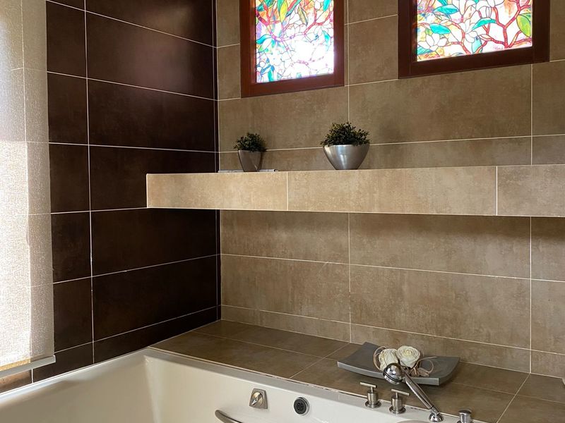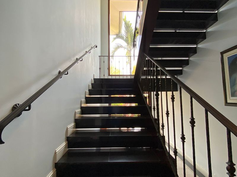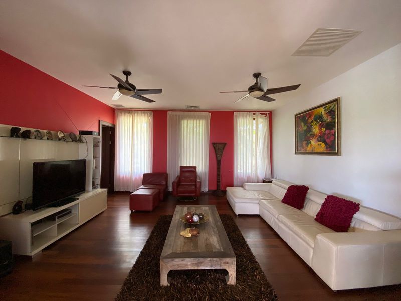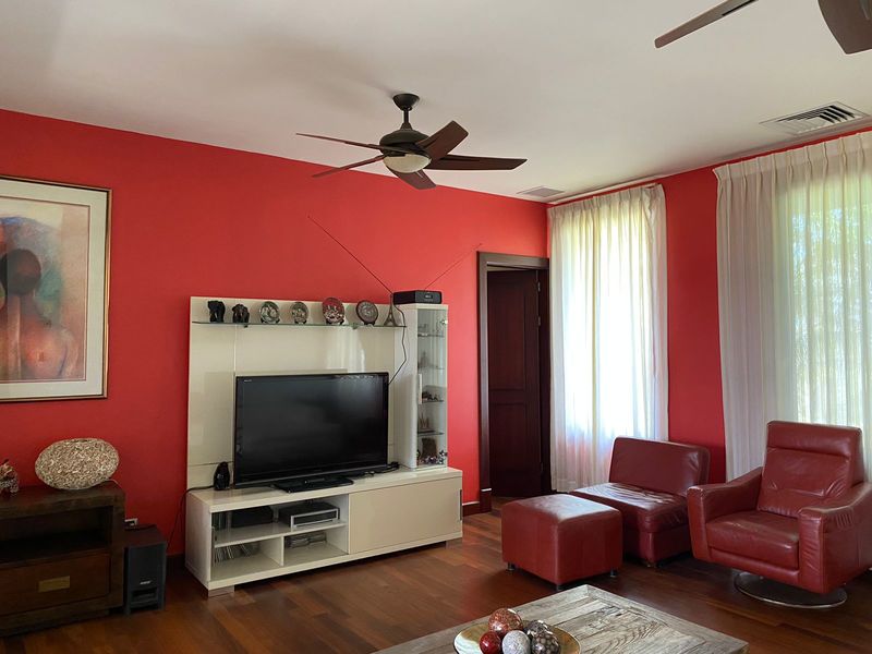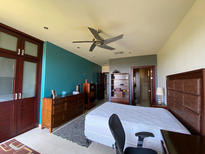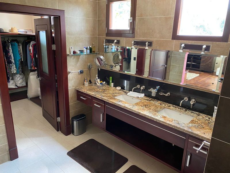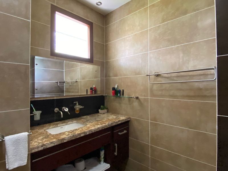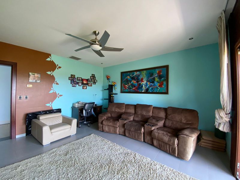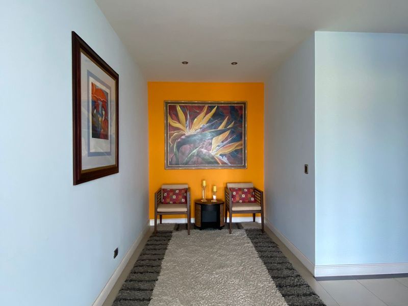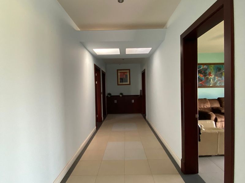 This luxurious, spacious, architect-designed contemporary home, has a living area of 520m2. This beautiful home is located in a quiet neighborhood in La Garita and it has been thoughtfully designed to take full advantage of an amazing climate and beautiful views and landscape gardens providing not only beauty but privacy. The neighborhood has only one entrance with controlled access and 24/7 security. It is situated in a child-friendly and spacious gated community. This unique living opportunity is located minutes away from the highway Bernardo Soto and the international Airport. The location of this home is tranquil and fantastic. You will live here, practically in the bustle of the city, but with peace and a view. Upon entering this 520m2 home you will find a spacious hall that connects to an office space. This home has five bedrooms all with their own functional bathrooms. A place to indulge yourself in the living room, kitchen area, and a large sun terrace where you can dine with an amazing view over the green meadows. Attached to the living room is a bedroom that can be used as a guest bedroom. As you exit the living room and go through the hallway, you come to the master bedroom, where you can sit on your own private terrace with a view of the green landscaped garden. This bedroom has a spacious, modern bathroom with a walk-in closet. If you continue your way through the hall, you will find a spacious laundry room and a door that leads you to a 3-car multifunctional garage. A wide staircase in the hall takes you to the second floor, where there are three spacious bedrooms with connected bathrooms. On the second level is also a multifunctional, spacious room that can be turned into a playroom or TV room with a balcony looking over the mountains and where you can enjoy a lovely breeze.