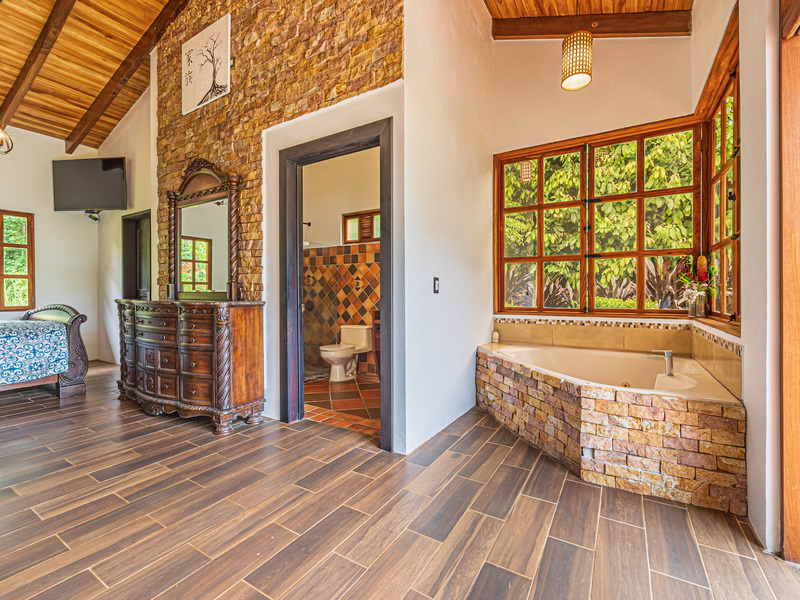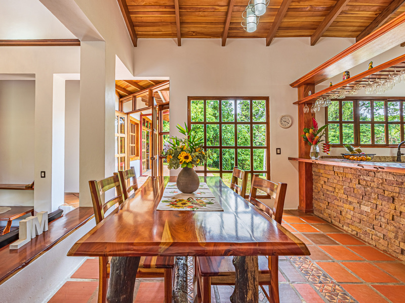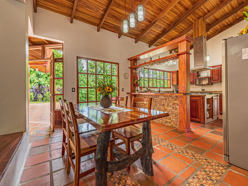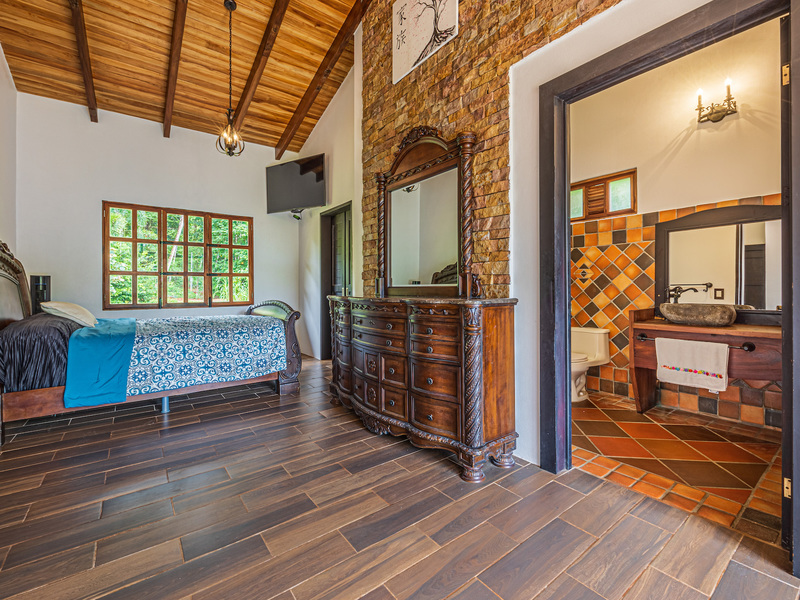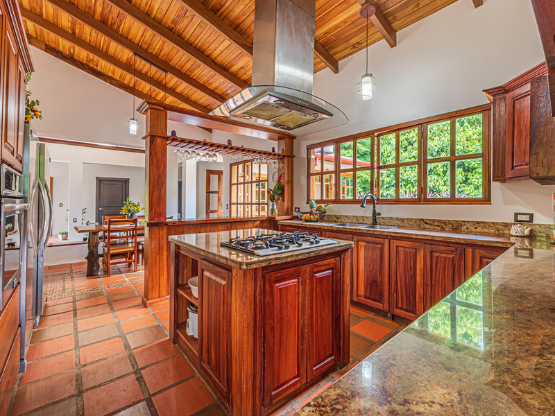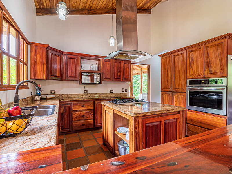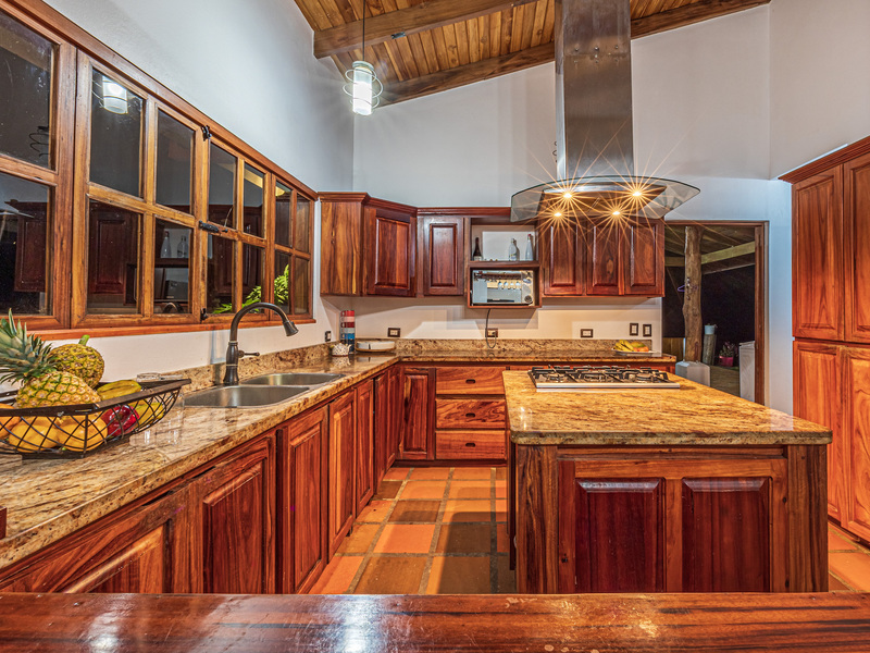 Throughout the house, you'll find exclusive wood sourced from Costa Rica, adding a touch of opulence and highlighting the natural beauty of the surroundings. The wood cabinetry and finishes further enhance the rustic charm, creating a harmonious and inviting atmosphere.