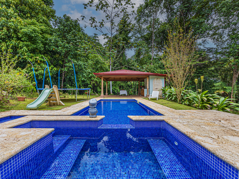 Welcome to this remarkable house located in the picturesque area of 5 Ventanas, Ojochal. With an expansive land size of 2.9 acres and 4.843 square feet of construction, this residence offers a captivating blend of rustic charm and Spanish-inspired design. Every detail has been meticulously crafted to create a truly extraordinary home.