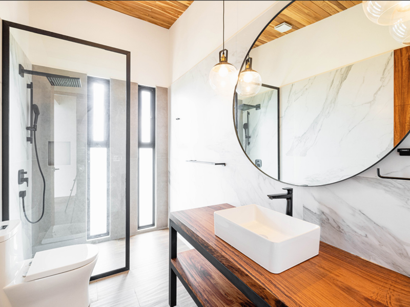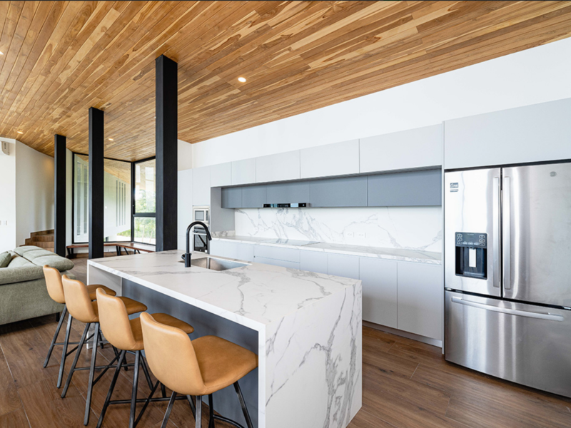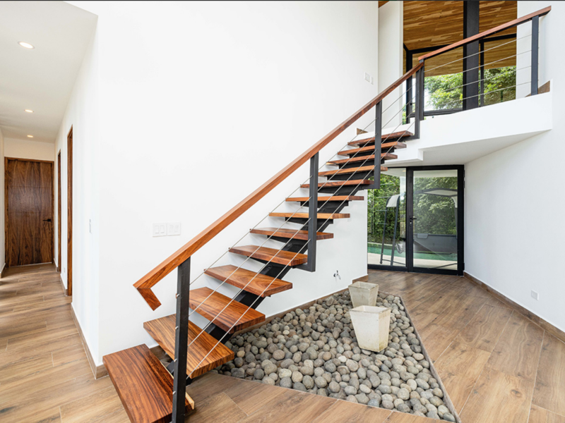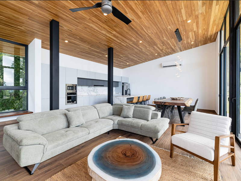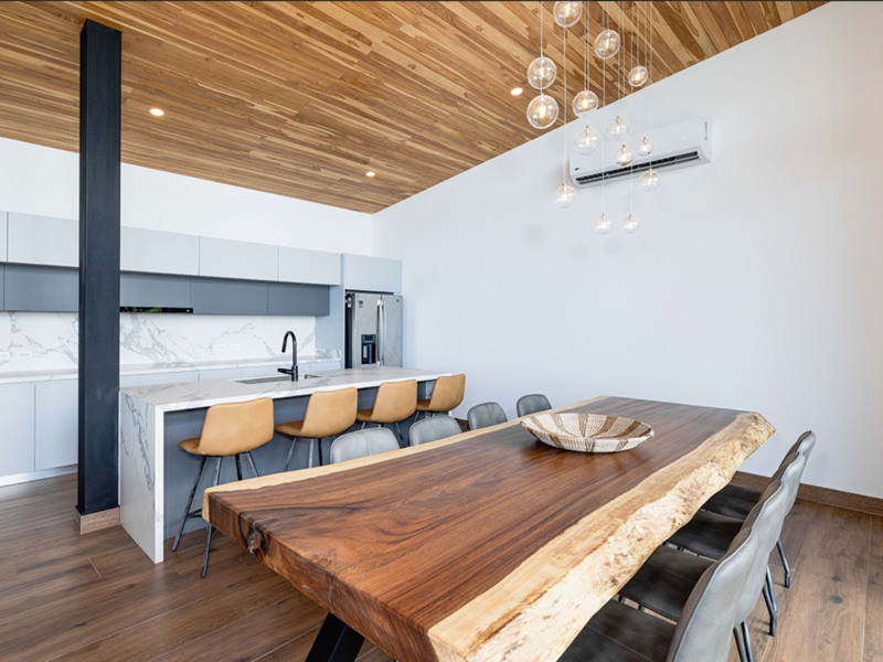On the 2nd floor you have the remarkable open concept plan that includes a kitchen, a dining room and a living room. It has ceiling to floor windows to give breathtaking views of the ocean. Integrated are high wooden teak ceilings for both a modernistic and cozy feel. The 2nd floor rounds out with a master bedroom and an ensuite bedroom, both with incredible views of the beauty that surrounds the home.