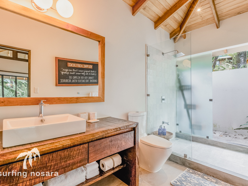 Jardin Casa Zona Azul offers the rare opportunity to acquire a truly turn-key luxury property with the versatility to utilize the property in several different ways. The intelligent architectural design and generous lot size means the property can be used as a private retreat center (with plenty of room to expand), a truly unique vacation rental, or even as a family estate. All elements of this property have been completed to a very high standard and the sale comes with everything included, even the golf kart! Located close enough to all of the amenities found in Guiones but far enough away to easily escape the crowd and enjoy the tranquility of the nature.