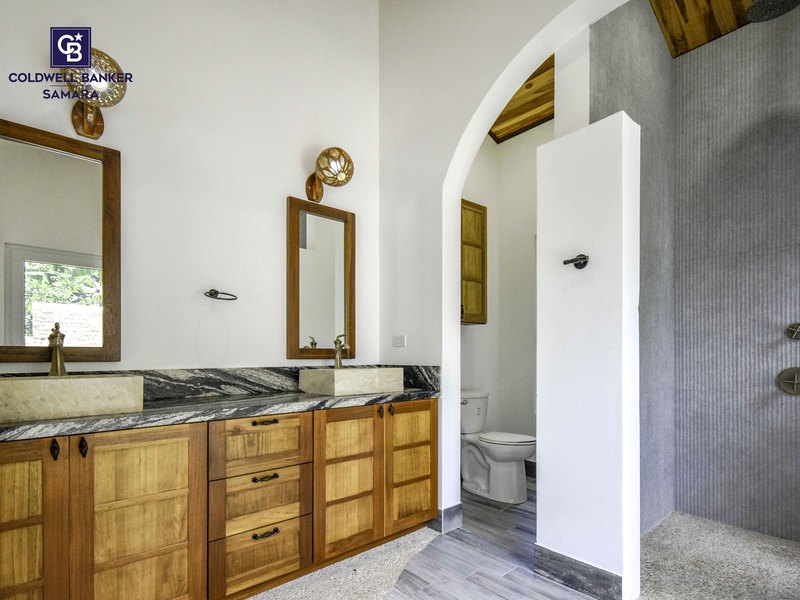 Casa Serenity is a gorgeous property. Featuring a 3-bedroom, 2 full -bathroom 2 half bath house, this modern home has so much to offer! From the gorgeous cook's kitchen, to the high ceilings, to the outside bar with a huge outdoor living area and infinity pool with amazing ocean and mountain views - this home has it all! The stunning home is situated on the hill top in the tranquil neighborhood of Esterones, where you can enjoy beautiful views and its soo close to the beach that you can hear the wave and feel a nice breeze, but also the proximity to the small town. The cherry on top? It is located on a piece of land measuring just over 2 hectares including 2 undeveloped ocean view platforms which offer plenty of potential to expand.