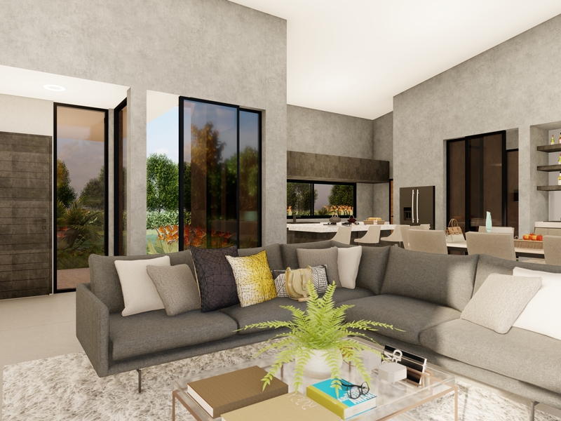 Fall in love with this brand new elegant modern compound residence and choose your finishing touches. Construction has started and is expected to be completed in summer of 2023. Located in the perfectly private and quiet nature setting of the Papagayo golf course in Vista Ridge gated community, the spacious 1.29ac flat lot right on the golf course will accommodate the main residence and an independent guest house, leaving plenty of space for gardening and outdoor activities. The main house of 2,379 SF under A/C and 3,186 SF total, features extra-height open all-on-one level floor plan with 3 spacious bedrooms and 3 and a half bathrooms. Two of the bedrooms are set up as master suites with good sized walk-in closets and master baths including modern indoor/outdoor zen showers. The impressive bright great room incorporates an island kitchen, a formal dining area with a bar, and a comfortable living room, all integrating smoothly with the outside large patio leading to an infinity pool and a separate outdoor covered kitchen and dining area for entertainment. Additionally, the main house comes with a double car port, and a laundry room conveniently located off the kitchen. The stand-alone independent guest house of 1,055 SF under A/C and 1,324 SF total, features an open plan one-level design with high ceilings. Two bedrooms and two full bathrooms with a laundry, are adjacent to an ample great room with full kitchen, dining and living areas with added covered car port. This project is being completed by an experienced known architect and builder team delivering modern designs and high-quality finishes. This property comes with granite or quartz countertops, modern cabinets and closets, and efficient air-conditioning systems, as well as low maintenance tropical landscaping. Optional extras include: paving stone driveway, appliances and other upgrades.