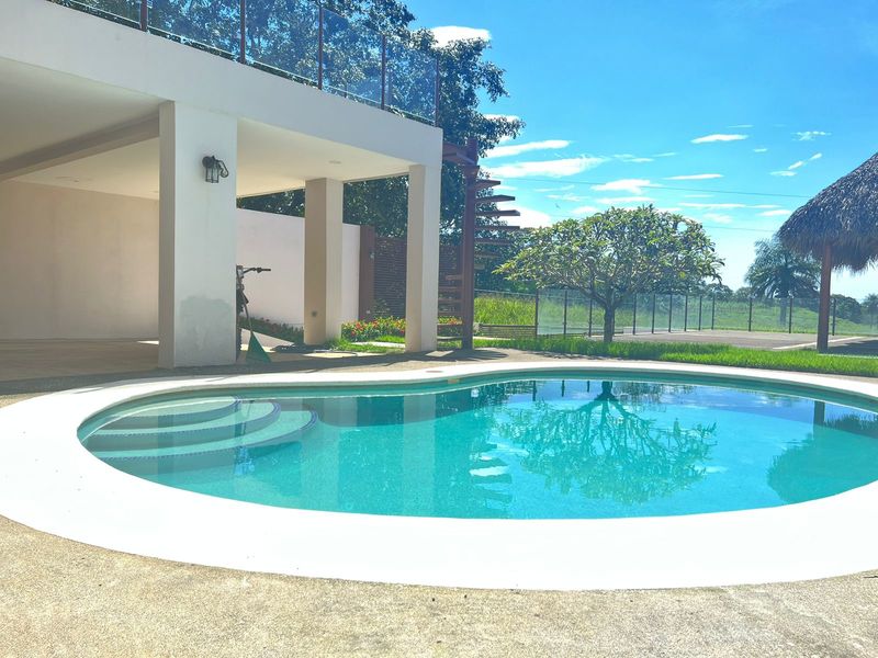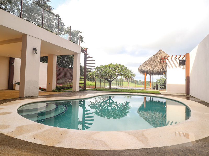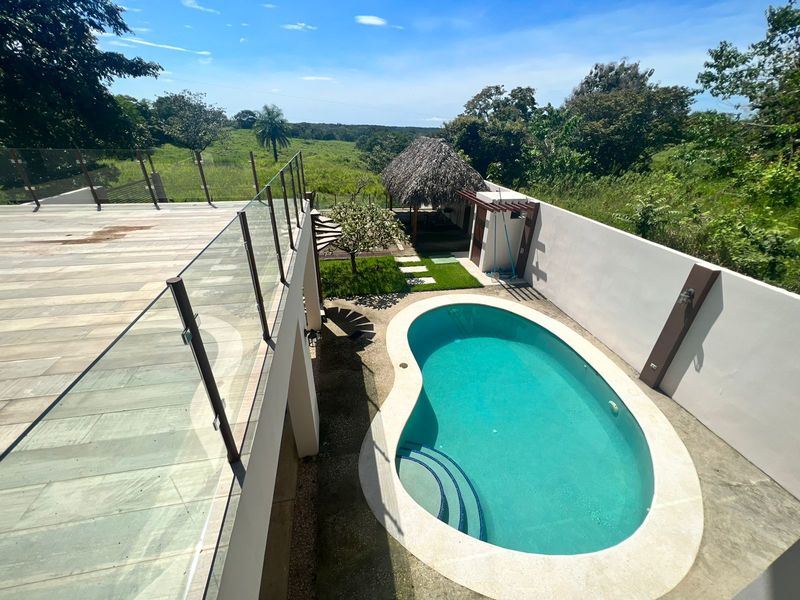 This luxury estate is located a few minutes-drive from Playa Lagarto, in the province of Guanacaste. Playa Lagarto is a wonderfully quiet fishing village that offers stunning views of the Pacific Ocean and mountains. A popular destination for surfers due to its fast waves and surfer camps. Tourist destinations, including Nosara and Tamarindo are situated one hour from this spectacular gem! Nestled in the dense forests of Playa Largarto, this gorgeous two-story home offers luxury and relaxation in a true natural paradise. With 6 bedrooms and 5 bathrooms, this spectacular home has everything you need! There is plenty of space for events and gatherings, including the rancho and swimming pool area. Additionally, the second floor you will find an immense open terrace. Enjoy the sound of the waves and wildlife in this luxury hidden gem!