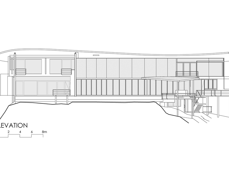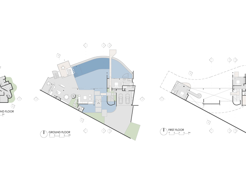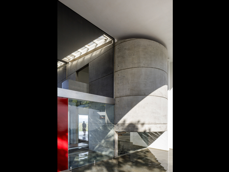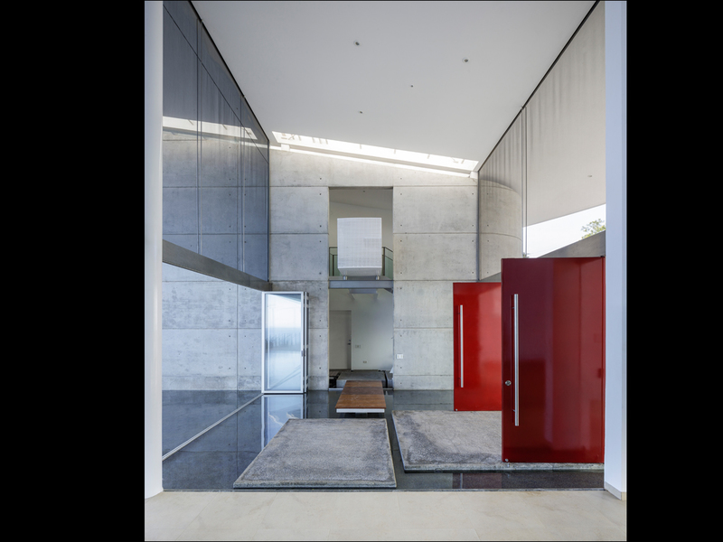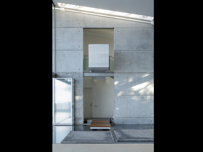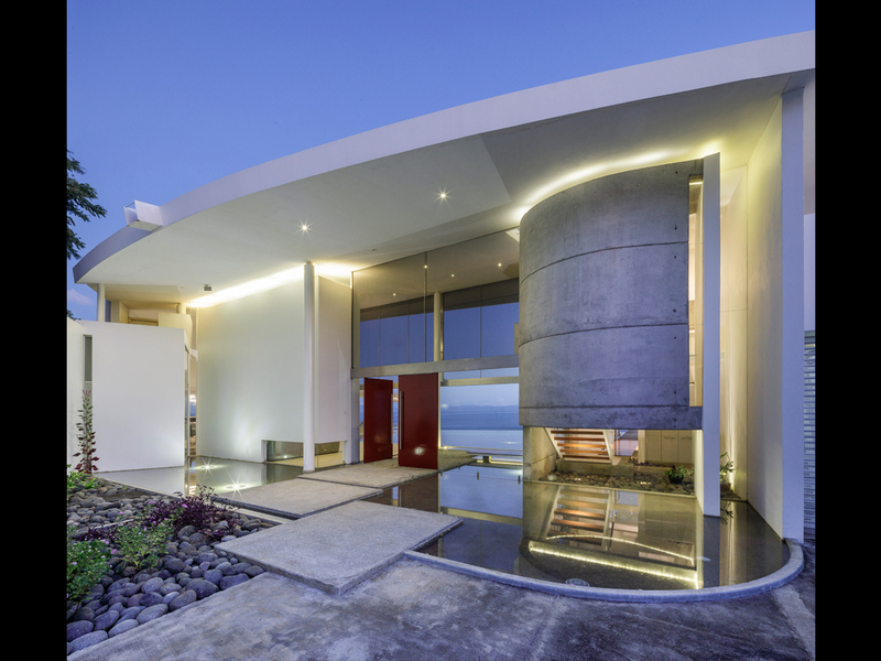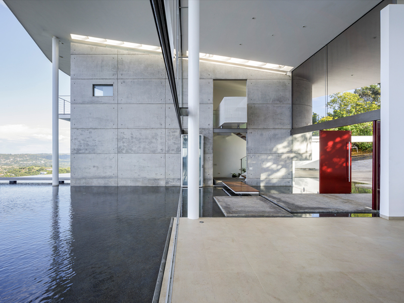 Water An infinity edge swimming pool/reflecting pool runs in front of the master bedroom and social areas and visually blends with the ocean and reflects the sky in an attempt to incorporate the scenery to the house, blurring the boundary between the here and there. This reflecting pool literally goes into the house at the entry and exists at the other side.